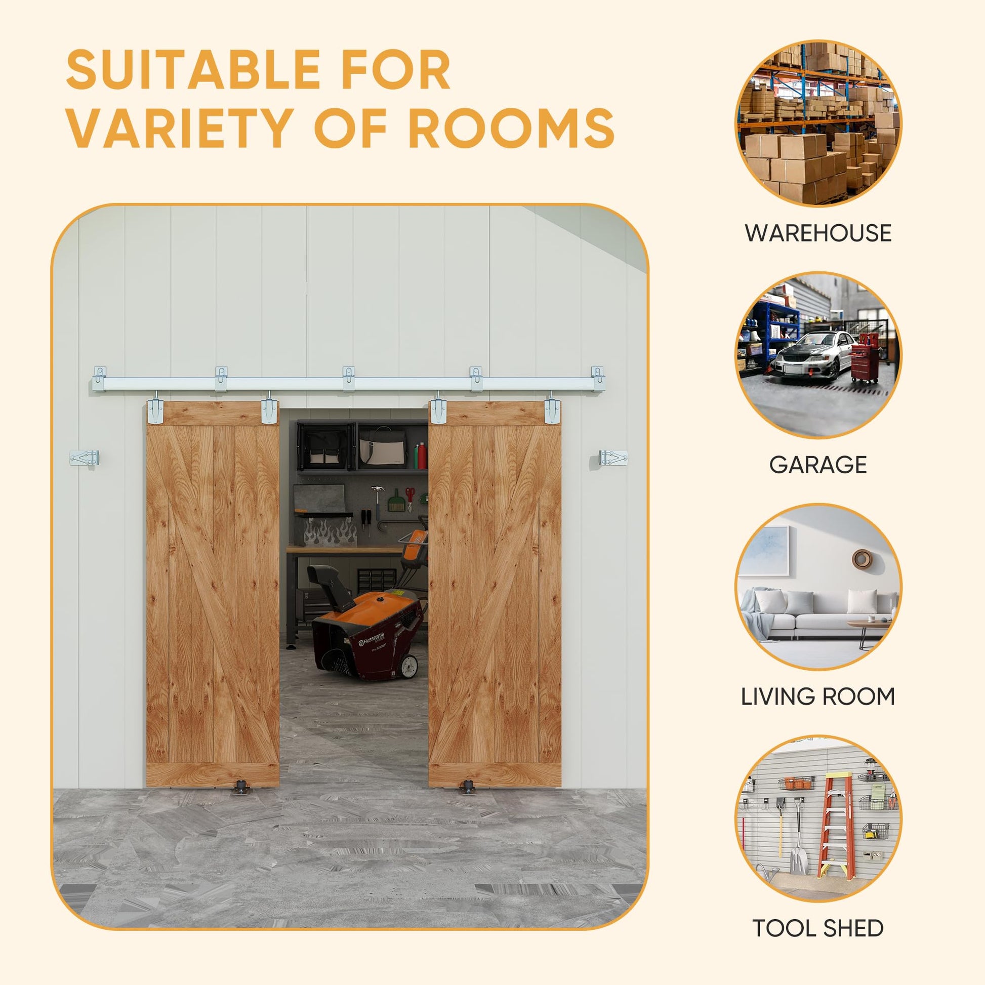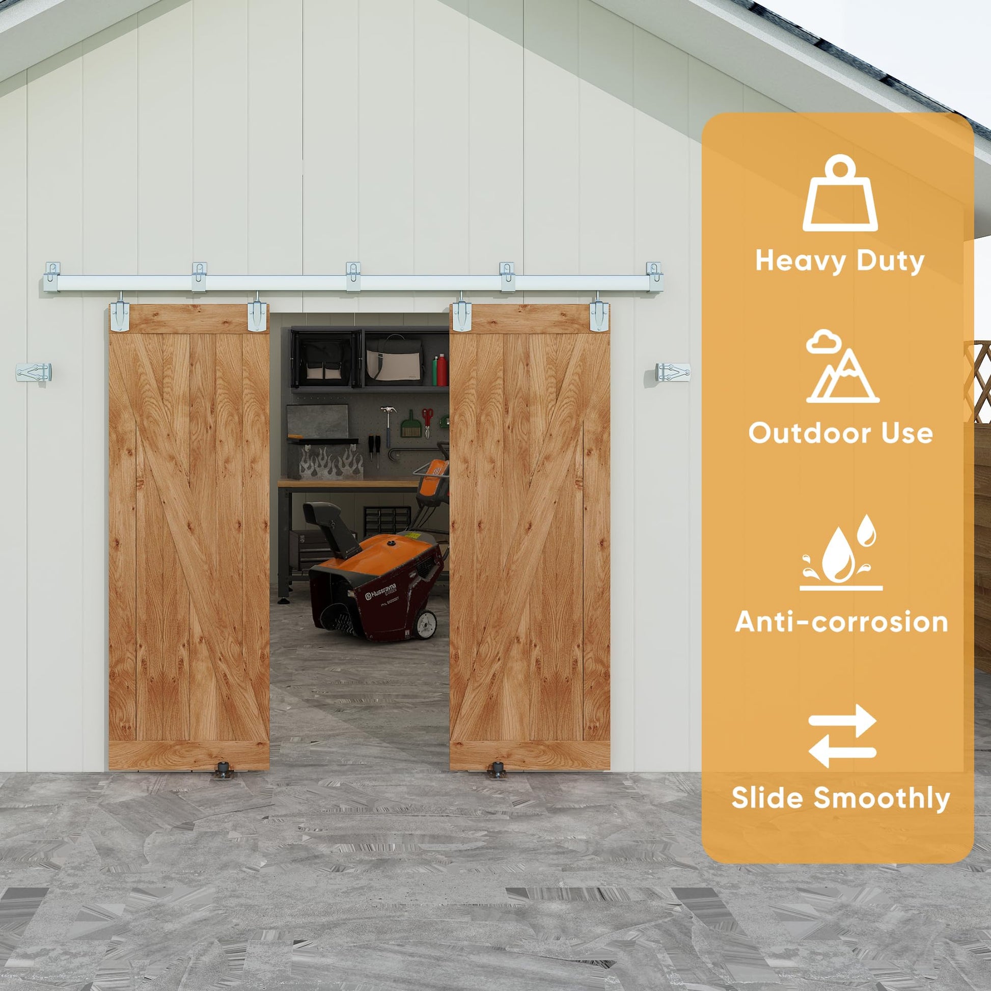- Weatherproof & Smooth-Gliding: Precision double-axis steel rollers and reinforced barn door track deliver whisper-quiet, frictionless operation. Heavy-duty end caps protect against weather damage. This sliding door hardware keeps doors secure and effortless to maneuver.