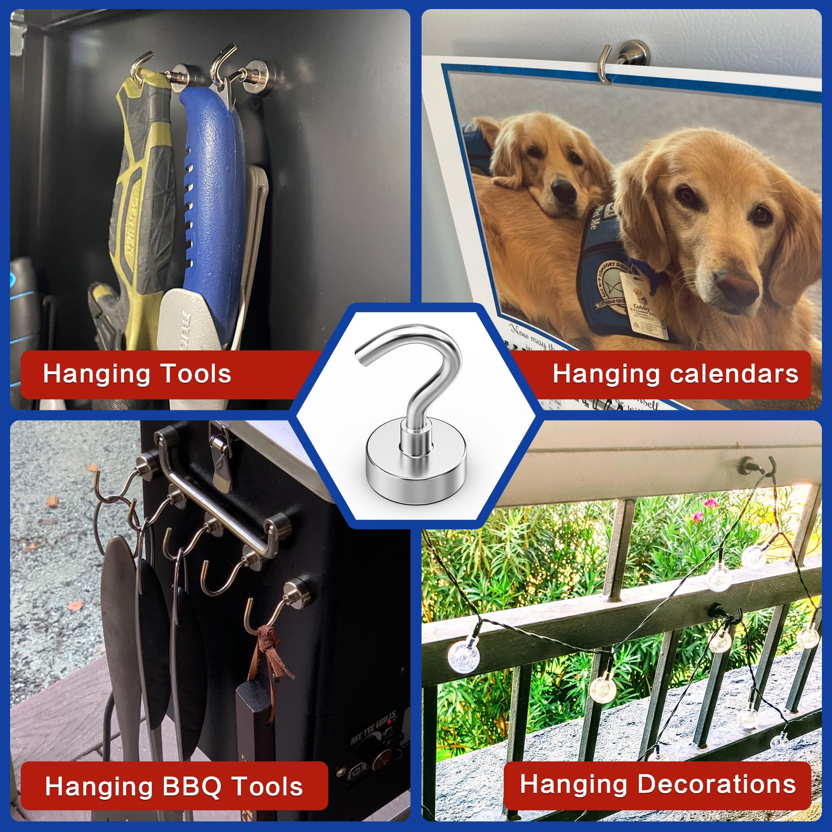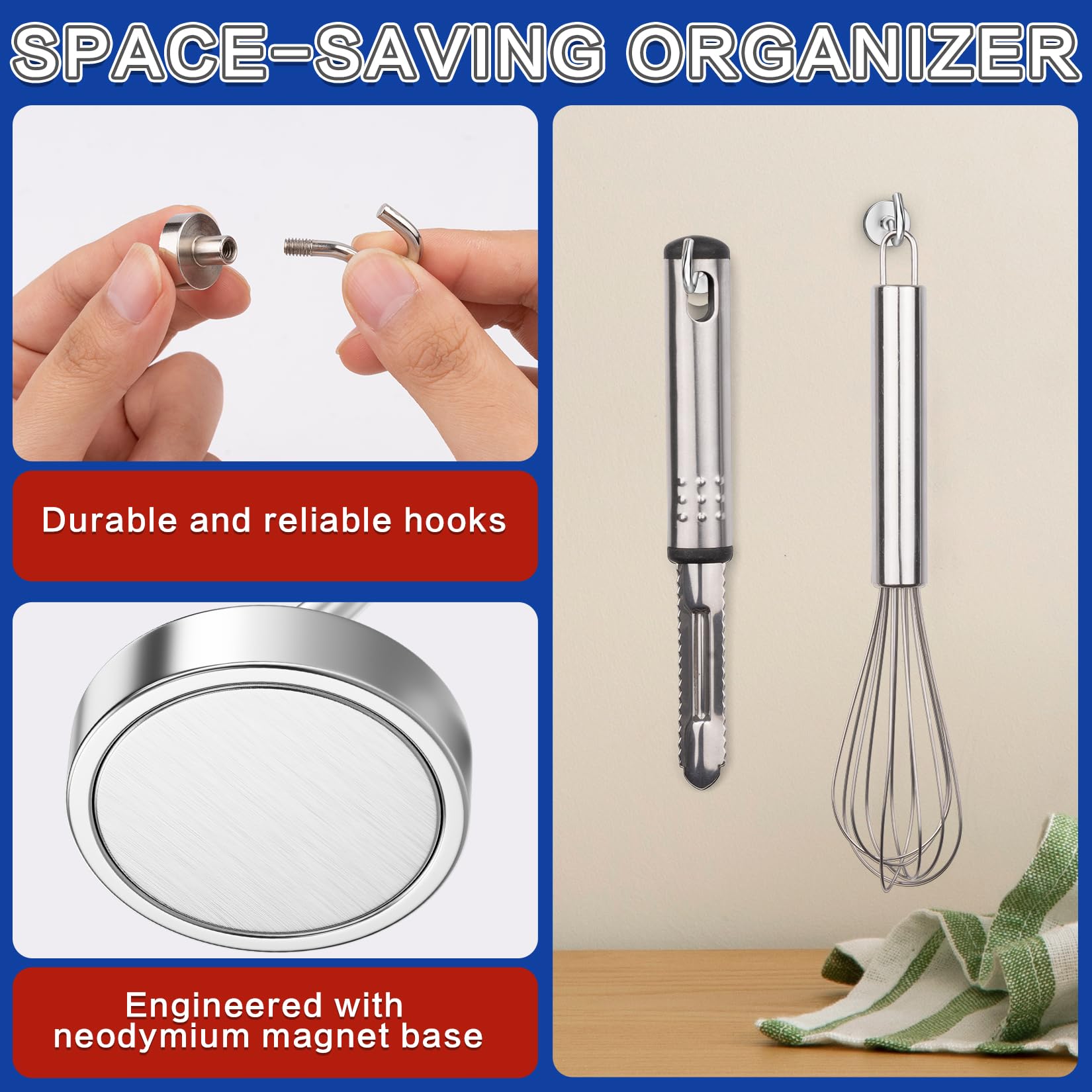 - Your Everyday Organizer: From your kitchen to the garage, and even the outdoor barbecue, our strong magnetic hooks adapt seamlessly to every space. Say goodbye to clutter and keep your tools, utensils, and accessories neatly organized wherever you need them