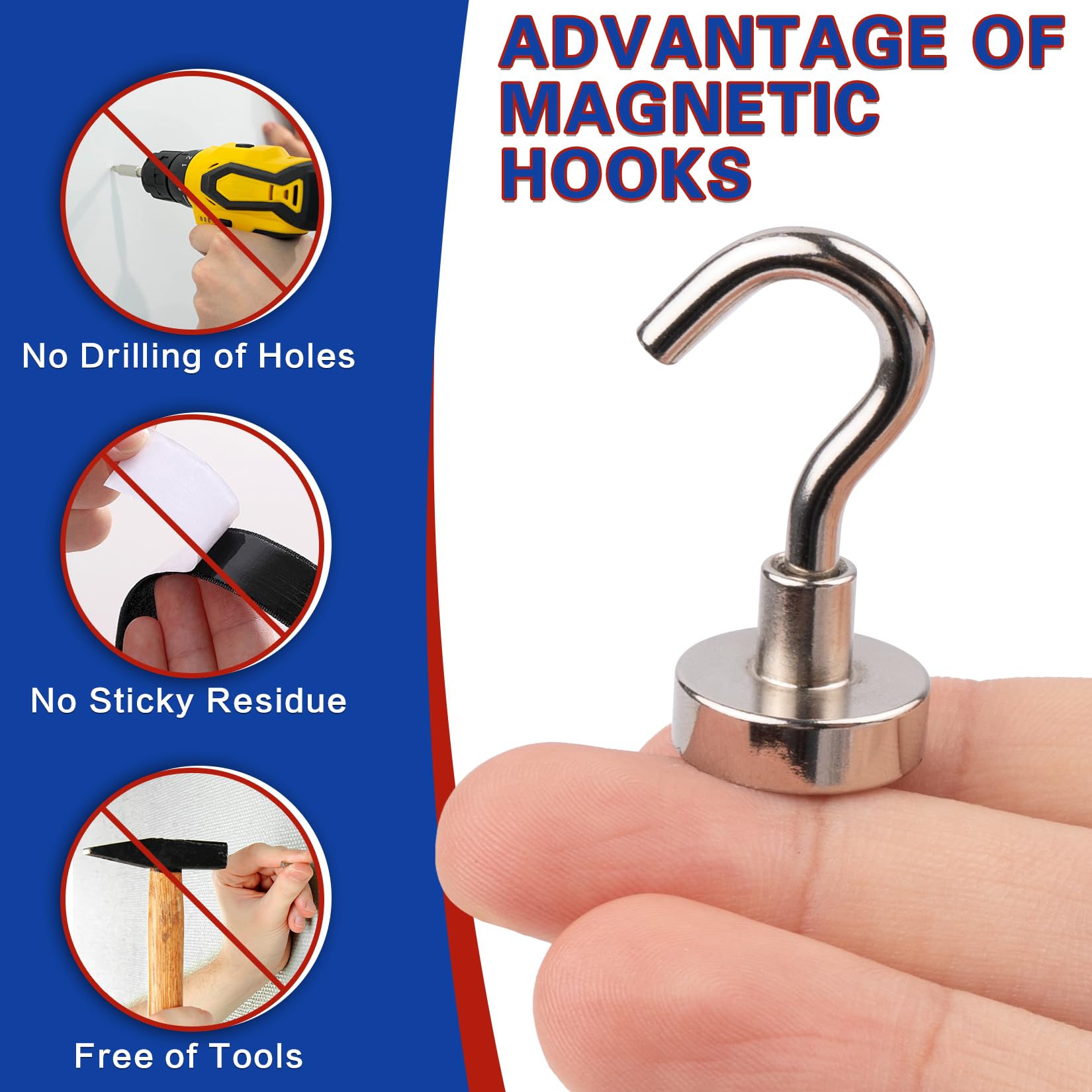 Junarter 20 Pack Magnetic Hooks, 30lbs Magnet Hooks for Cruise Cabins, Strong Magnetic Hooks Heavy Duty, Magnets with Hooks, Metal Magnetic Hook for Hanging, Hook Magnets for Classroom Decor, Grill