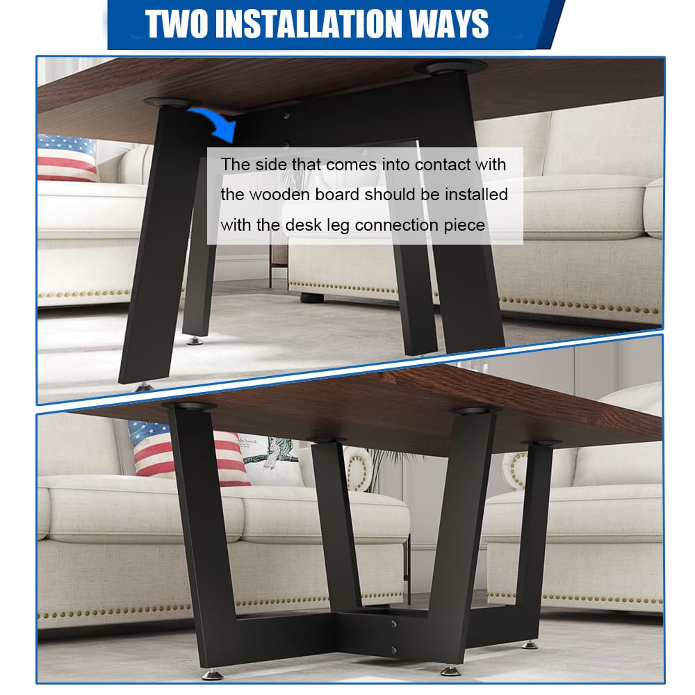 - Two Installation Methods: reverse mounting and regular mounting. To ensure stability, the side of the legs that comes into contact with the wooden board should be connected using the table leg cnnection piece, while the opposite side should be fitted with foot pads.