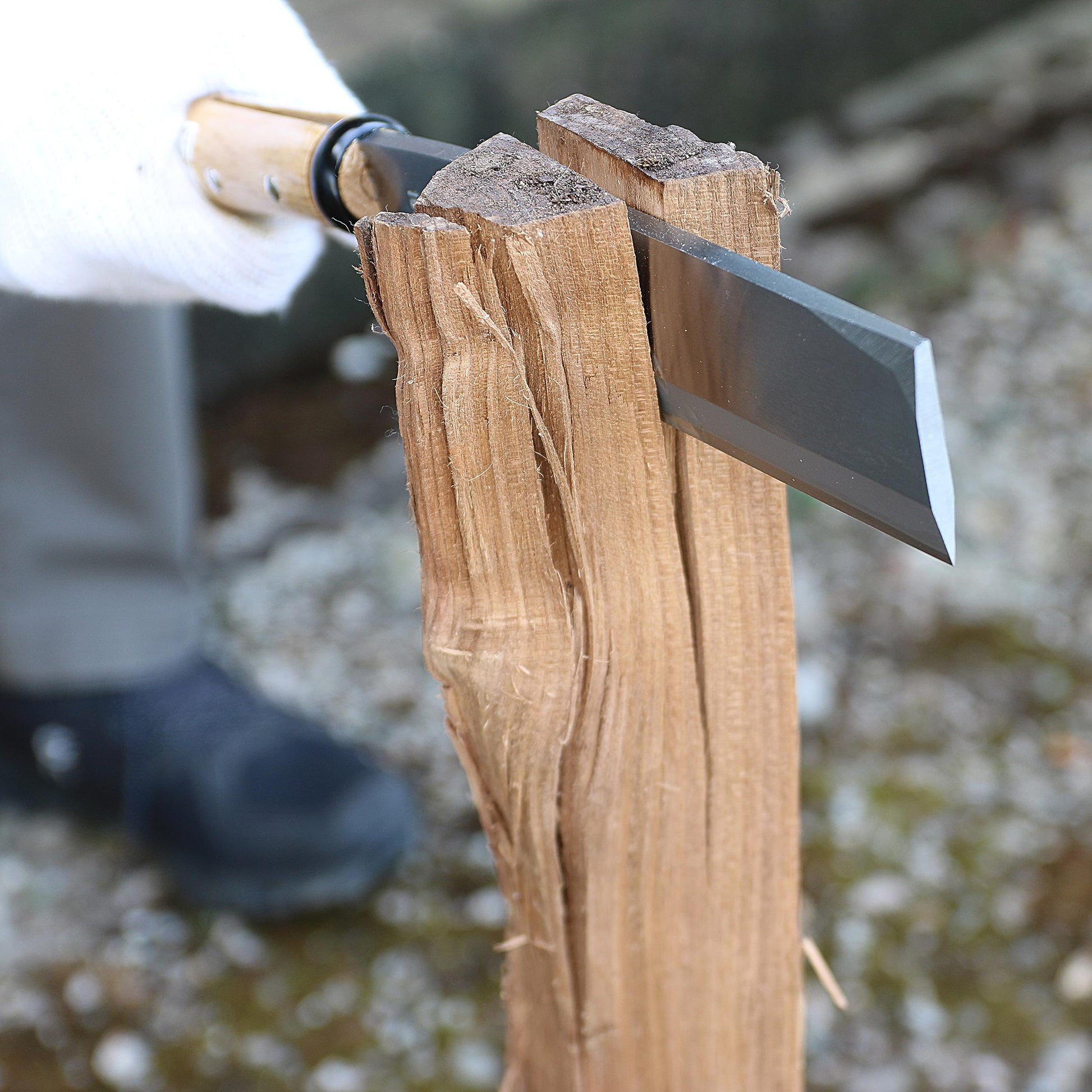 - [Double Bevel for Wood Splitting] The double-edged blade that can be used by both right and left-handed users. Ideal for splitting firewood as it cuts wood in a straight line.