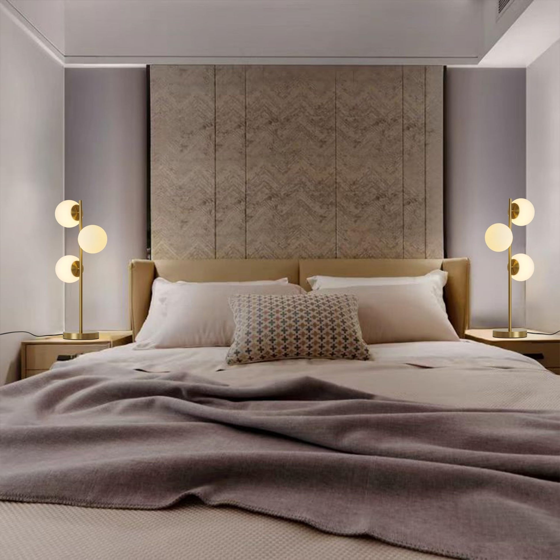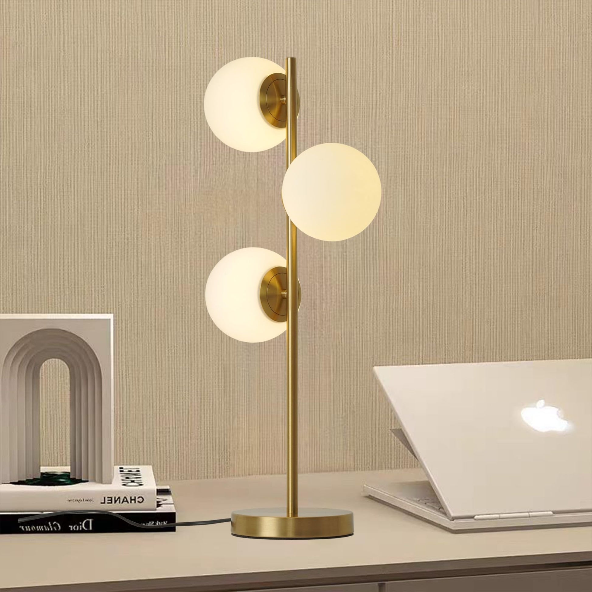 Kardleen Mid Century Modern Table Lamp White Glass Shade Nightstand Light for Bedroom Offices 3 Globe Table lamp Gold LED lamp