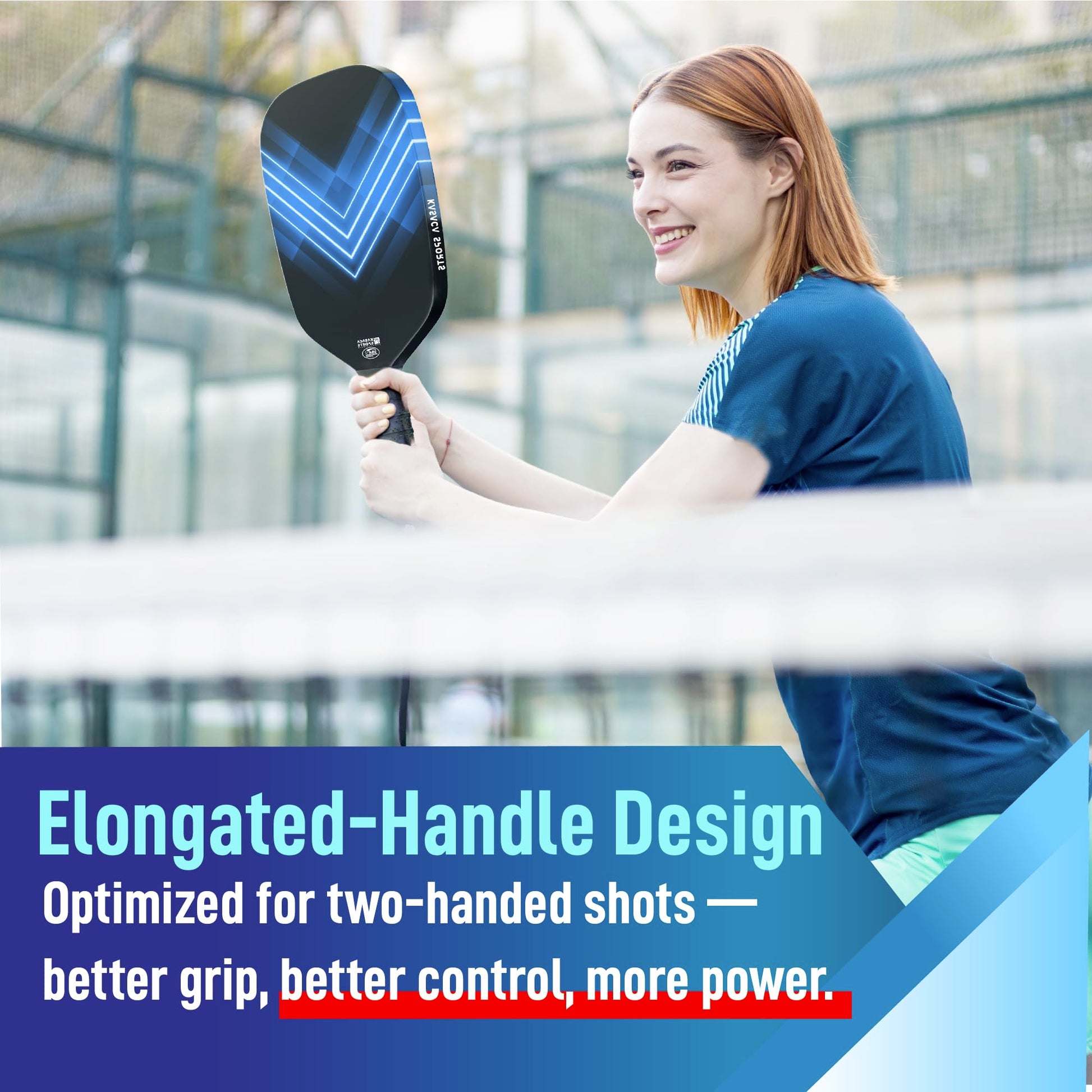- Carbon Forged Elongated Handle: Our in-house technicians design, engineer, and build paddles to meet industry-leading standards and provide maximum flexibility for power and comfort. The longer, cushioned handle supports one- and two-handed shots.
