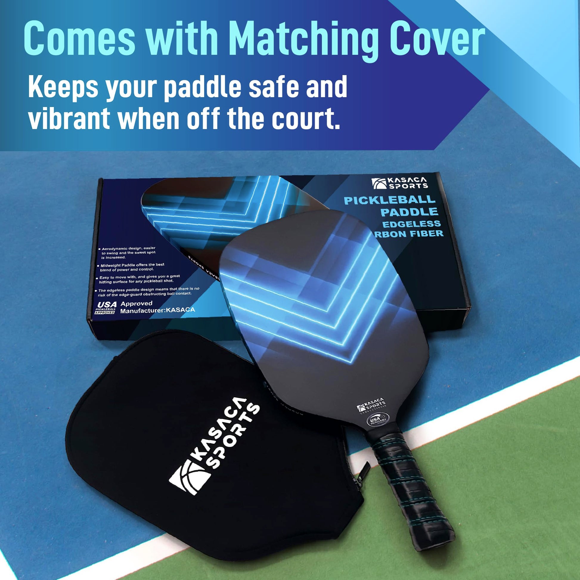 - USAPA Approved T700 Carbon Surface: The Kasaca grit textured raw carbon fiber pickle ball racket provides optimal friction for maximum spin. It comes with a protective cover for transport and storage, ensuring the paddle remains in top quality.