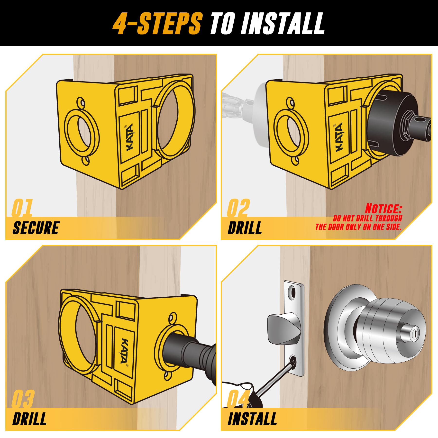 - Easy Lockset Installation:The adjustable guide template for easy and exact drilling with snap-lock arms for selecting door width and backset. Complete installation in 4 easy steps