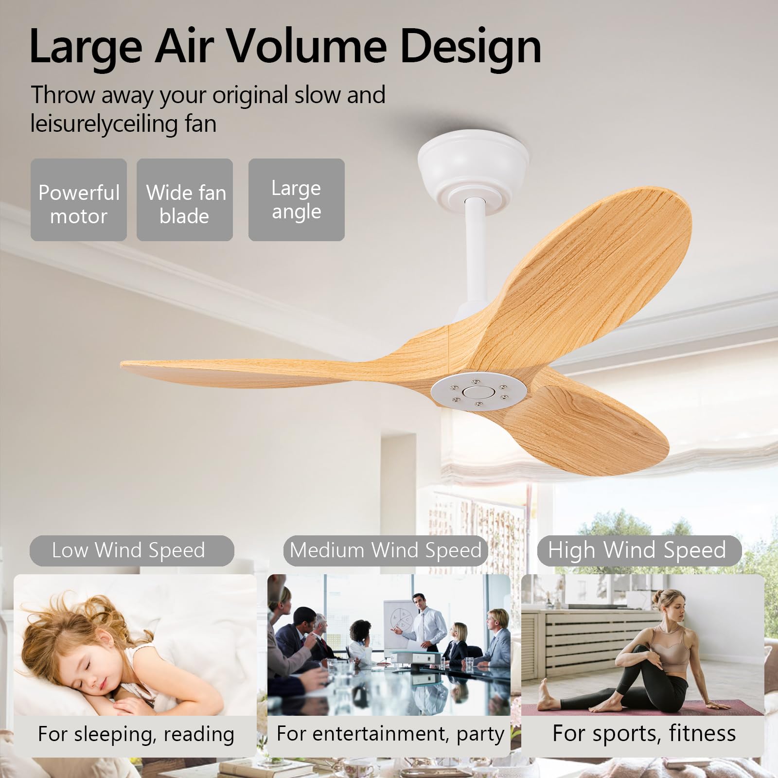 - Noise-free Experience: Through precise manufacturing techniques and balancing of the internal magnetic forces of the motor, we have significantly reduced vibrations and noise during the operation of this bedroom ceiling fan. The design of the 3 blades ceiling fan shape and angle ensures smoother airflow during operation, minimizing air turbulence and noise.