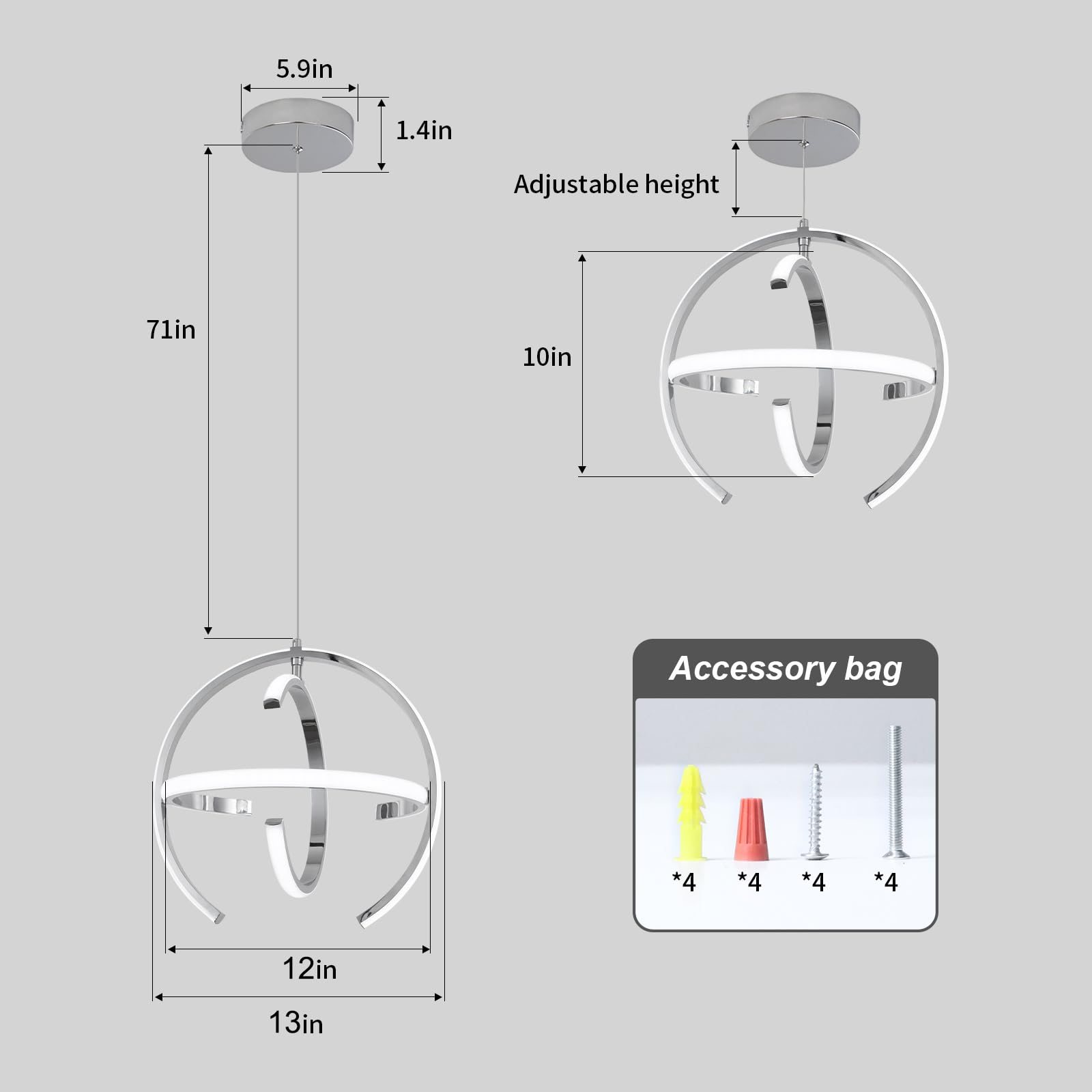 - 【Globe Pendant Light Size】 This round globe led pendant light Diameter 13", base 5.5" this pendant light comes with a 78.7" adjustable wire rope that allows you to adjust the height from ceiling to bottom between 92.5" and 15". Adjustable height dining room chandelier lighting is perfect for installation in rooms with high or low ceilings.