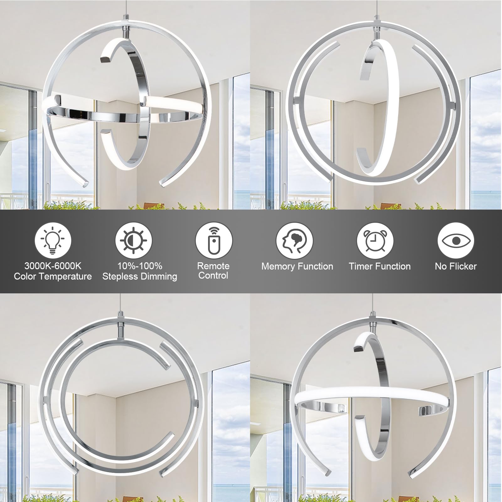 - 【Modern Chrome Chandeliera】This LED metal chandelier is made of 3 rings combination with an Adjustable lamp body design, you can change its appearance by rotating the frame, Lamp Body Surface adopts beautiful chrome silver plated finish frame and high-quality LED light source, presenting a beautiful and gorgeous shape.brings a chic modern look to your home.