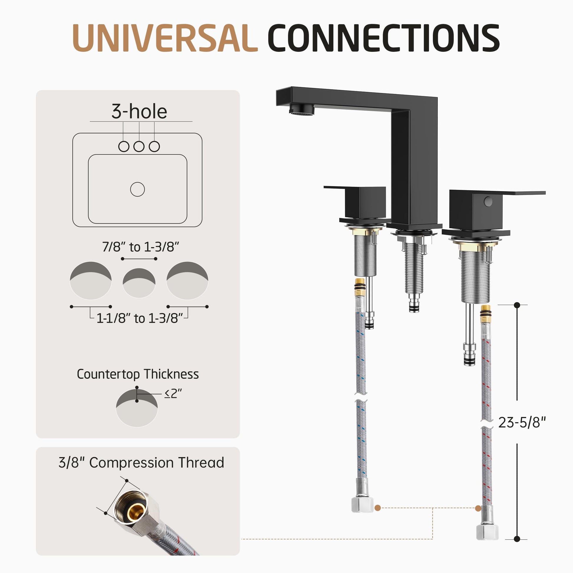 KES All Metal Black Bathroom Faucets 8 Inch, Widespread Bathroom Sink Faucet, 3 Hole Vanity Faucet with Supply Hoses, SUS 304 Stainless Steel Matte Black, L4350LFF12-BK