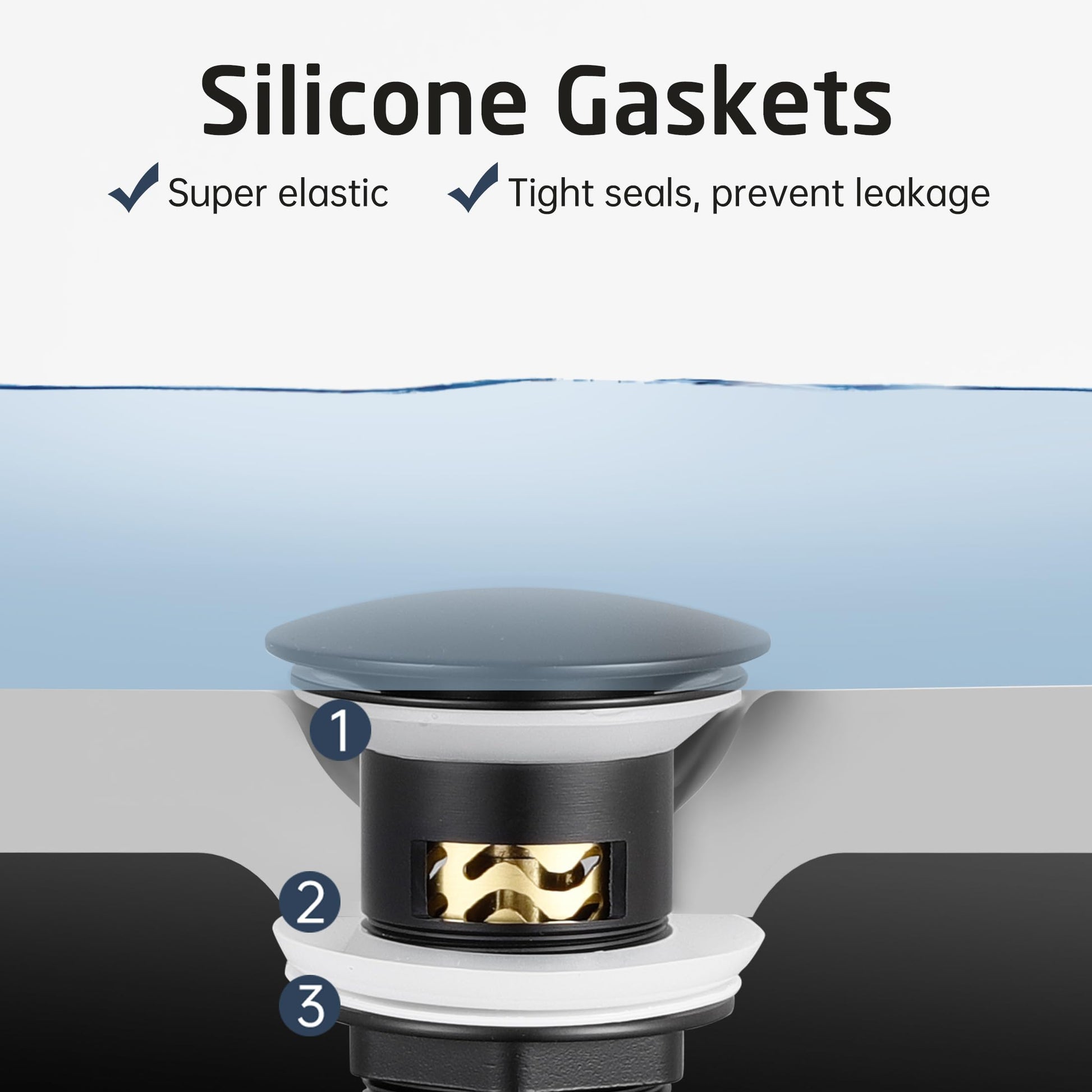 - Leak Resistance: This pop-up drain features high-quality silicone gaskets and a precision thread design, providing a perfect seal with the sink; This effectively lowers leakage matters and holds water securely