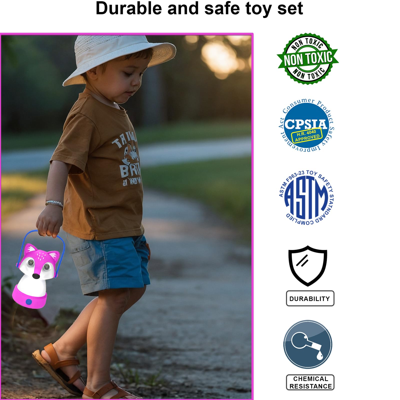 - GREAT FOR BOTH INDOOR/OUTDOOR ACTIVITIES: With its compact design, portability, lightweight build, and bright beams, this toy set is not only perfect camping essentials for kids and toddlers, but also serves as a great indoor table lamp, night light (rechargeable!), and flashlight. It makes a fantastic gift for Christmas, Halloween, or birthdays—your kids will love it!