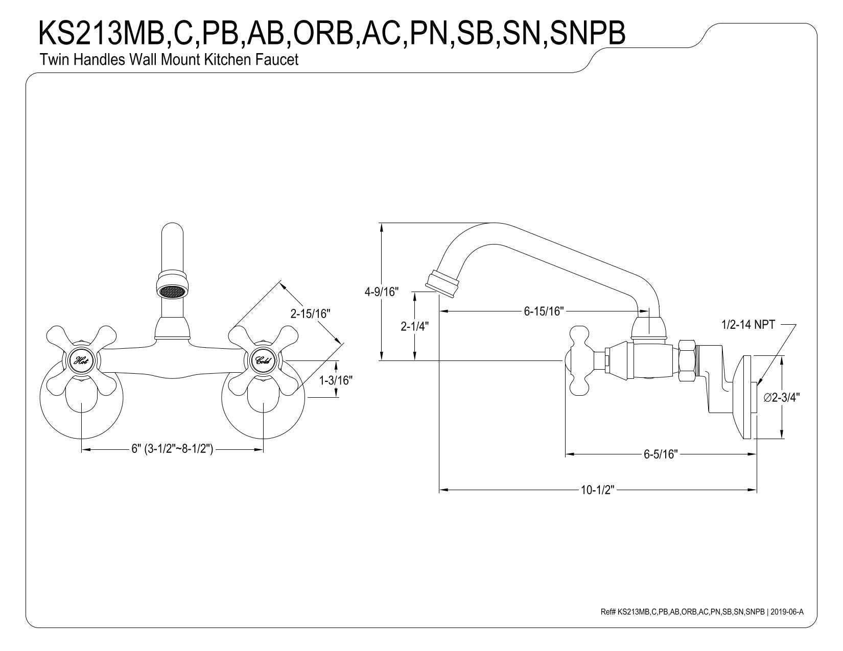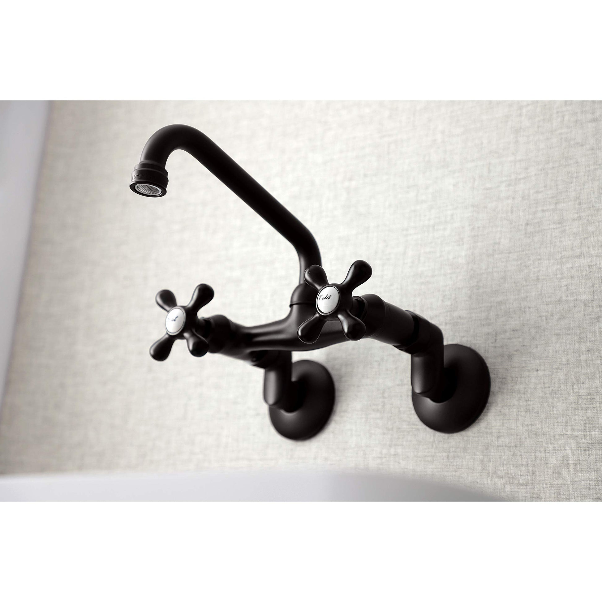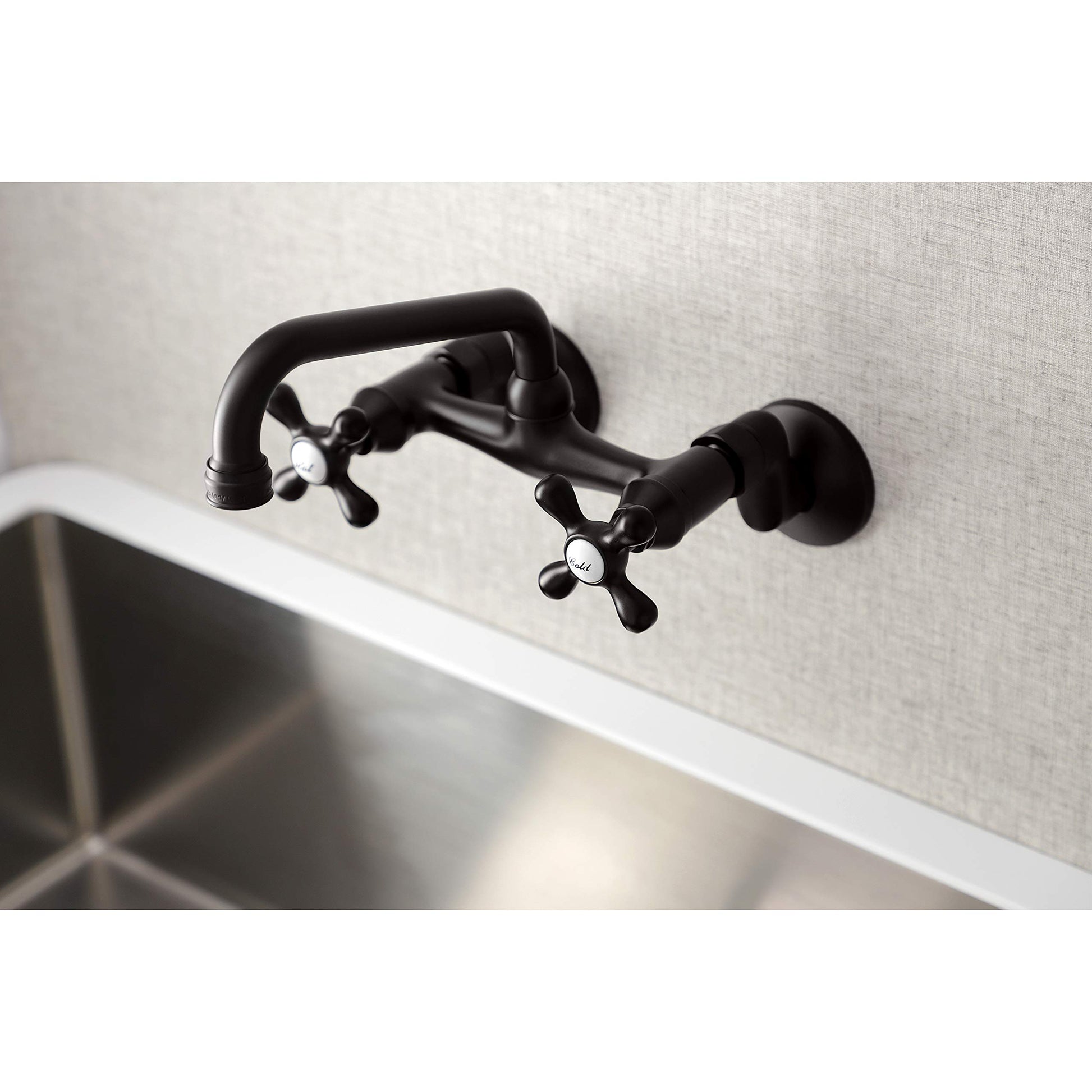 Kingston Brass KS213ORB Victorian Two Handle Wall Mount Kitchen Faucet, 7-Inch, Oil Rubbed Bronze