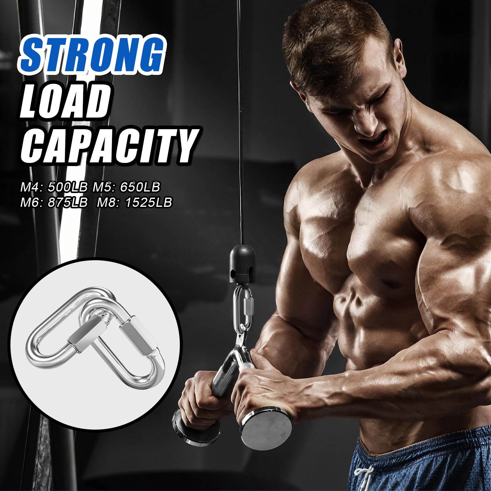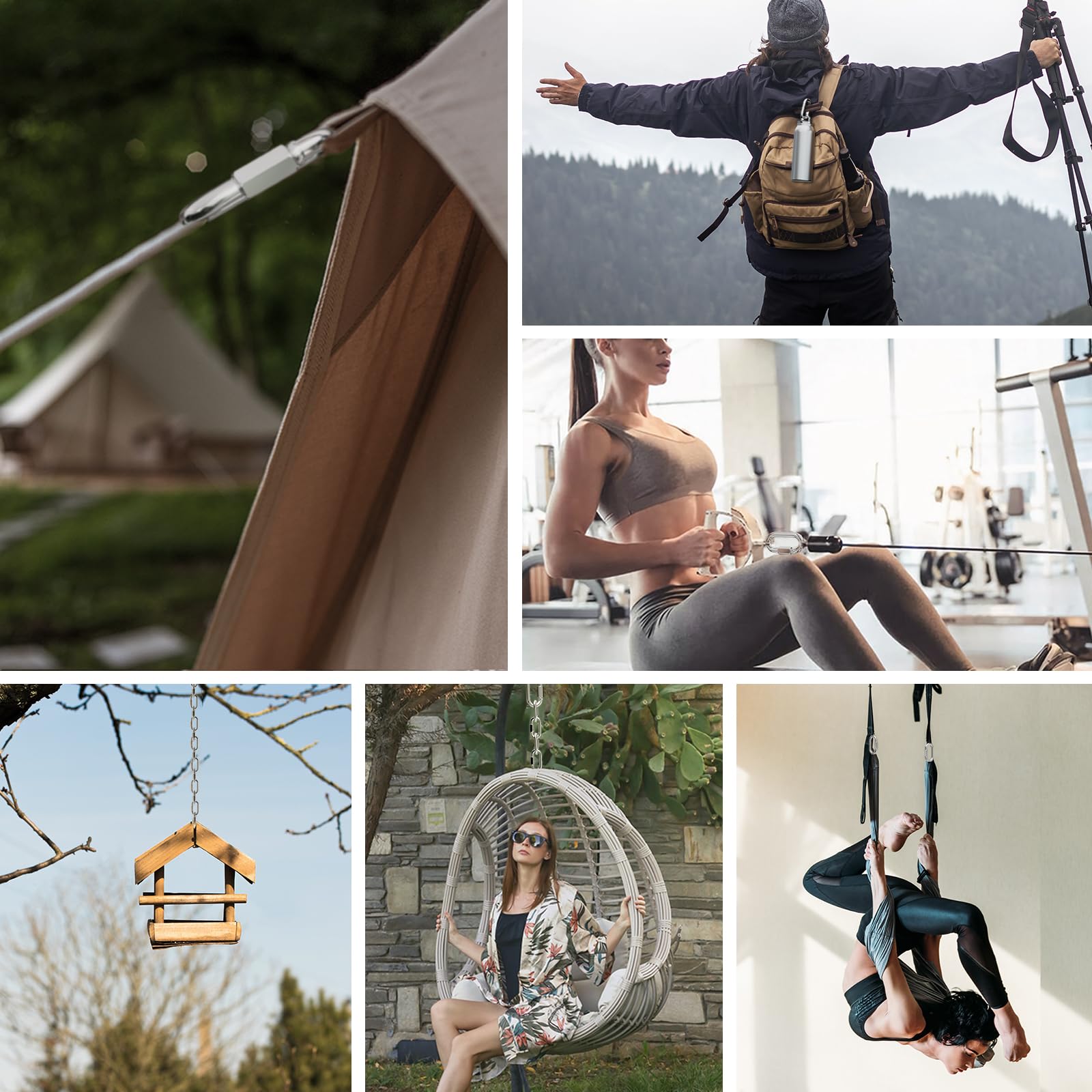 - WEIGHT BEARING: Our heavy duty carabiner making the impressive weight-bearing capacity of up to 650LBS, ensuring maximum stability and strength, giving an ideal quick link to meet any heavy-duty needs. (NOTICE: Not for mountaineering, rock climbing, ice climbing and high-altitude games for your safety.)