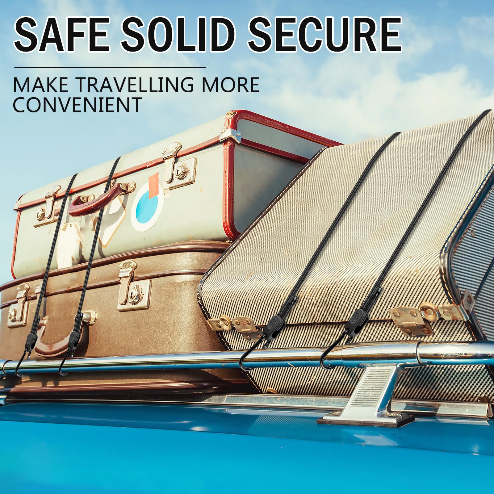 - 【Strong Load-Bearing Capacity】 Ordinary bungee straps with hooks can only bear up to 35 pounds and may snap under slight pressure, while our professional-grade elastic cord offers up to 200 pounds of super-strong tensile strength. Featuring an adjustable hook design, it provides solid protection for valuables.
