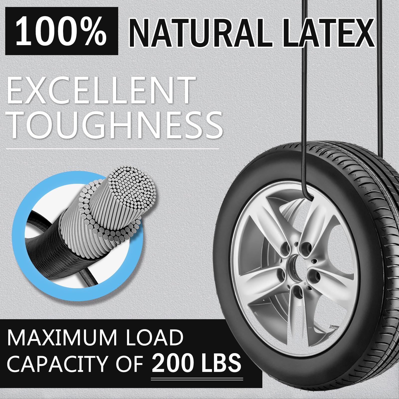 - 【Durability Elastic Cord 】With a generous diameter of up to 1/3 inch bungee cord,which exhibit great load and force-bearing capacity, ensuring their long-lasting durability. Furthermore, the outer polyester woven jacket has been UV treated, which can be withstand tough conditions of 257°F high temperature, ensures the longevity of the latex