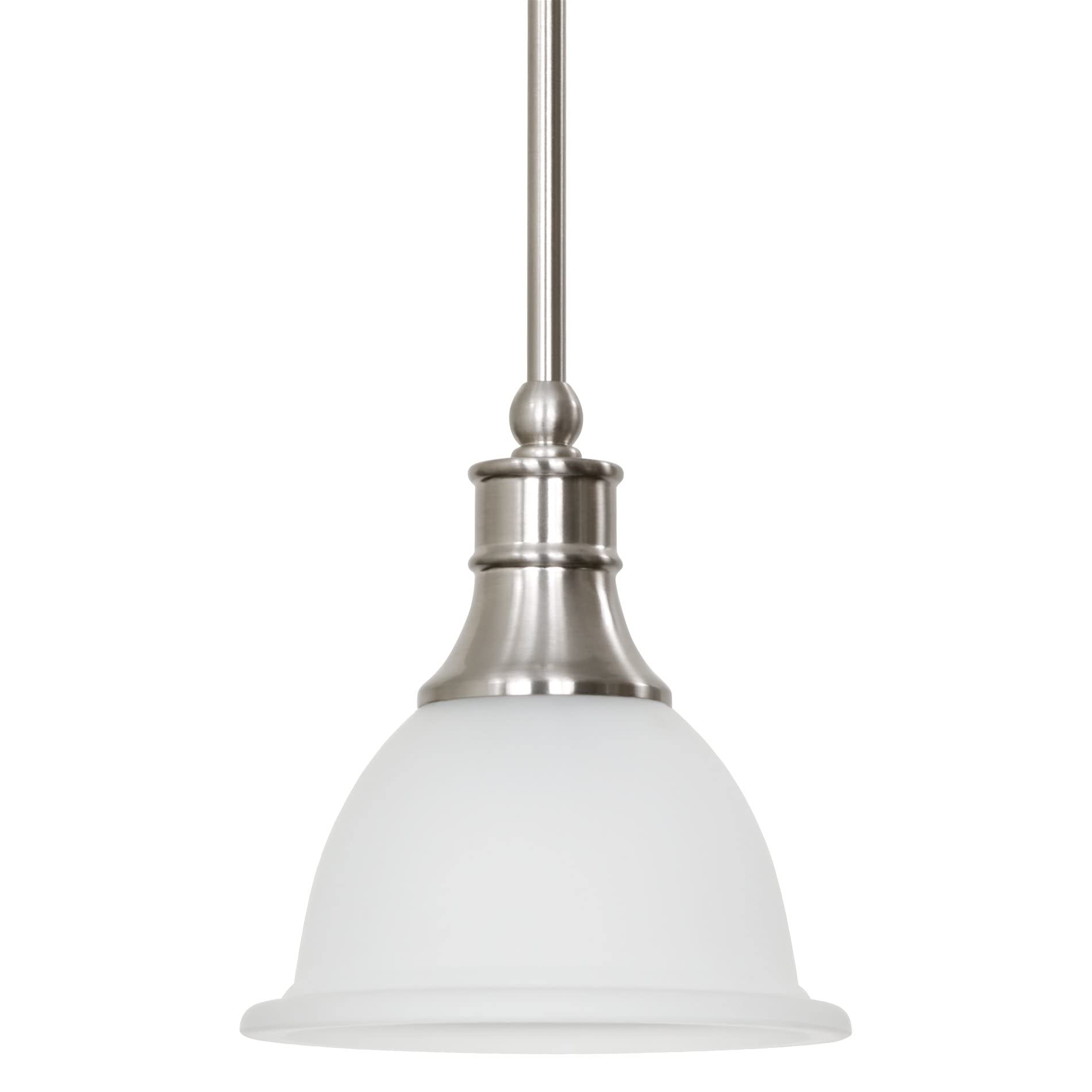 - [FITS MANY DECOR STYLES WITH UNMATCHED WARRANTY] This stylish hanging pendant light with a frosted open bottom tapered glass shade complements many decor styles from mid century modern and contemporary, to traditional and retro designs. Enjoy peace of mind with our 5-year warranty, guaranteeing your complete satisfaction