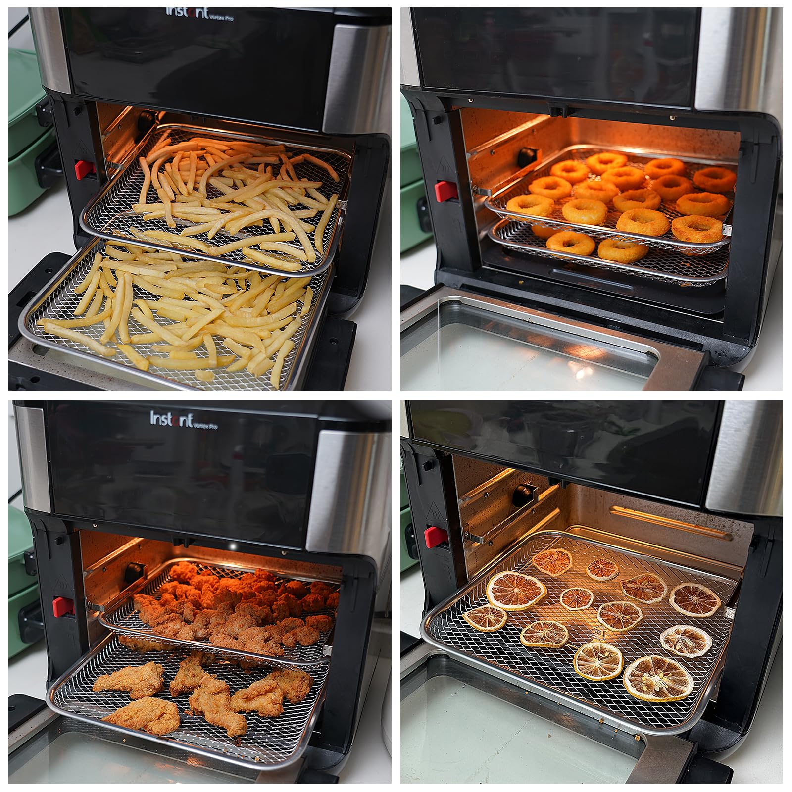 - 3-pack cooking air-flow tray allows your air fryer to dehydrate vegetables and fruits, make beef jerky, pizza, bacon, and bake faster