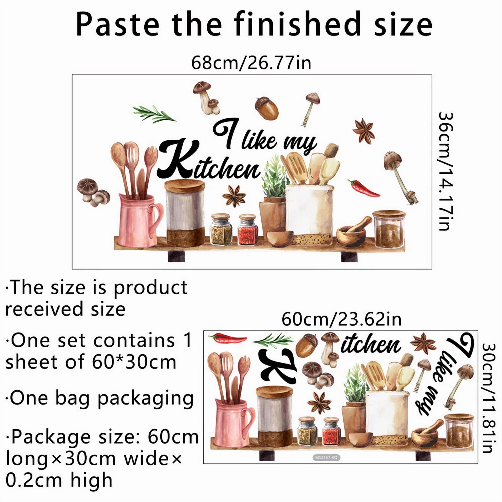 Kitchenware Utensil Shelf Wall Stickers, sacinora I Love My Kitchen DIY Wall Decals Removable Vinyl Peel and Stick for Kitchen Dining Restaurant Baking Room Bar Home Decor