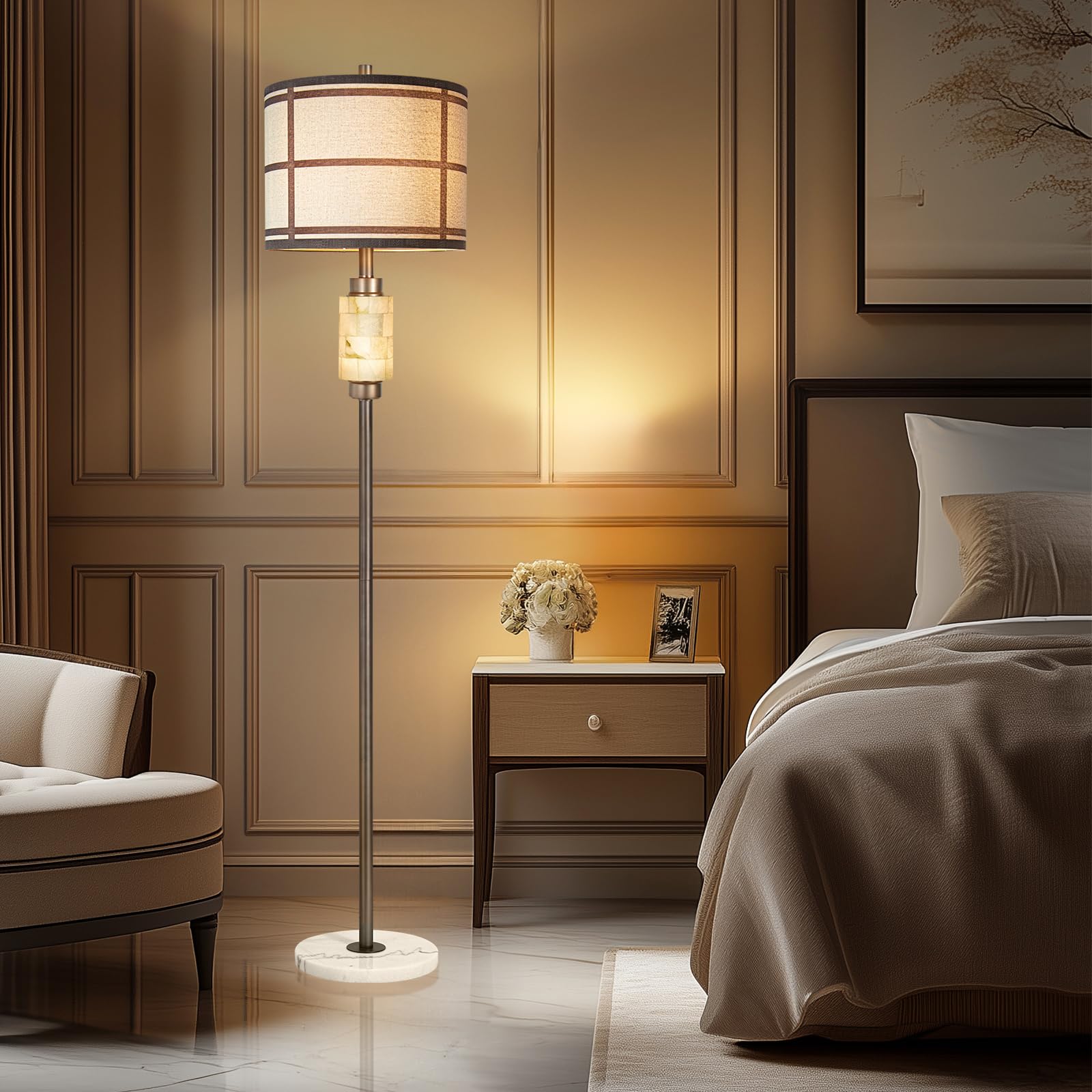 - Unique High-End Design: Modern Vintage Brown Lamp Pole And Brown Linen Lampshade With Elegant Style, Full Of Fresh Breath And Modern Combination, Unique And Modern Design, With Natural Alabaster Material, The Base Is Made Of Marble, Heavy And Strong,Not Easily Deformed。 Adds A Unique Design To This Floor Lamp, Absolutely Can Add A Sense Of Fashion And Art For Your Home. The Warm Light And Elegant Design Can Be Matched With Various Styles Of Home Decor Such As Modern, Vintage And Elegant.