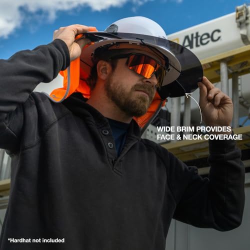 - WIDE BRIM: Provides extra face shading with the wide brim extending and additional 2-1/2 inches beyond the hard hat edge
