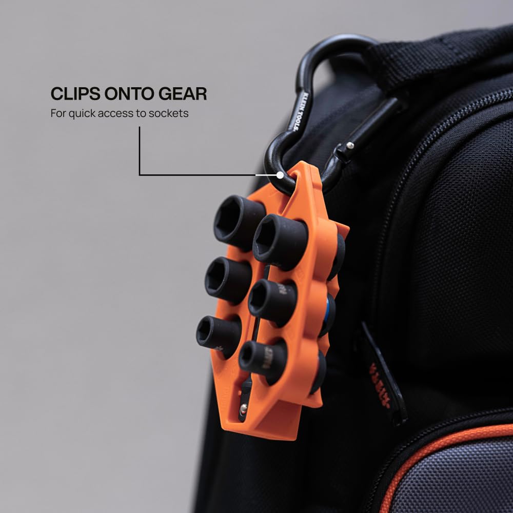 - CARABINER INCLUDED: Fasten socket sleeve to backpacks, tool bags, belts, and more for easy access and efficiency on the job