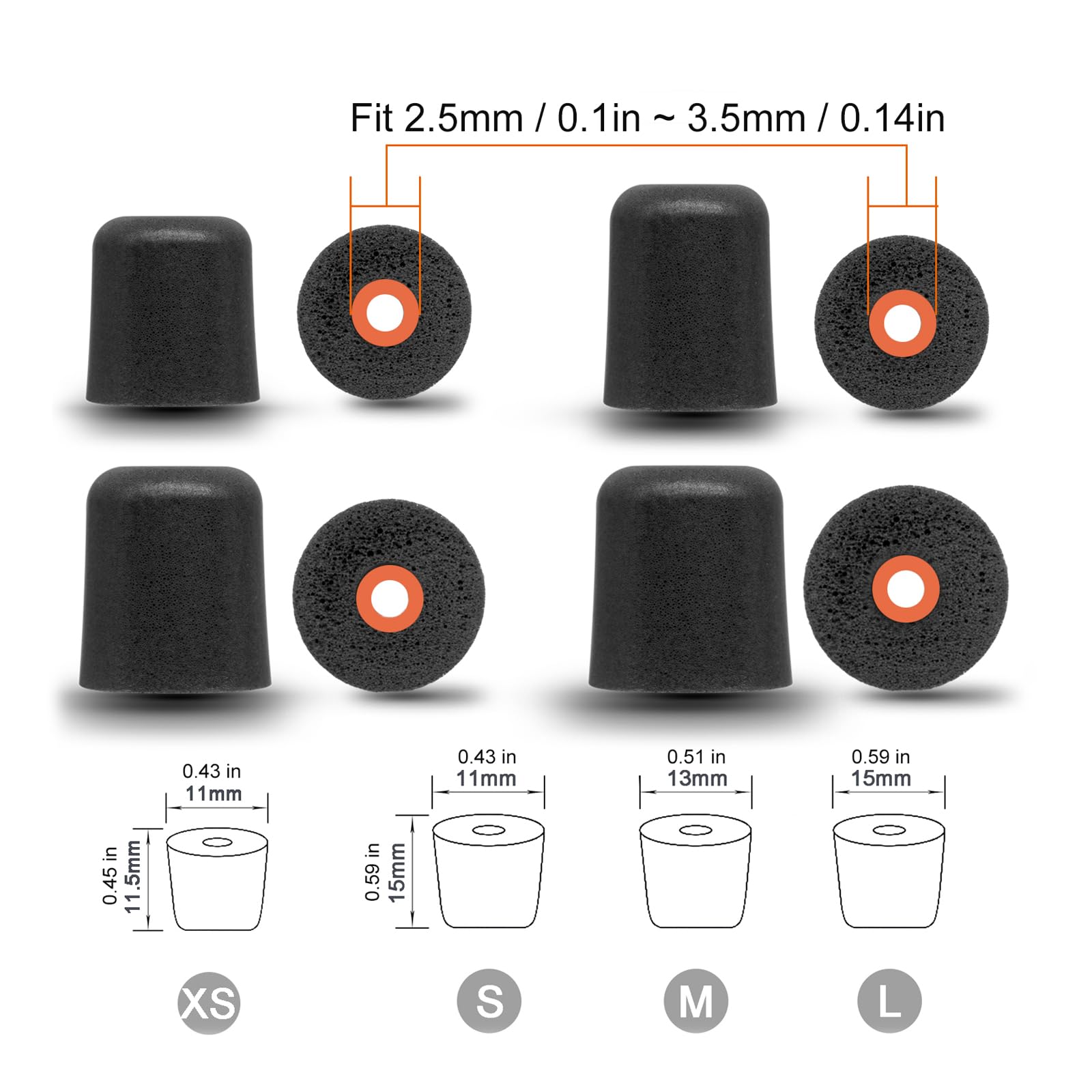 Details: Memory Foam ear buds tips for in-ear Headphones with 3-4 mm Tips. slowly rebound, comfortable soft, no ear pain for long time.