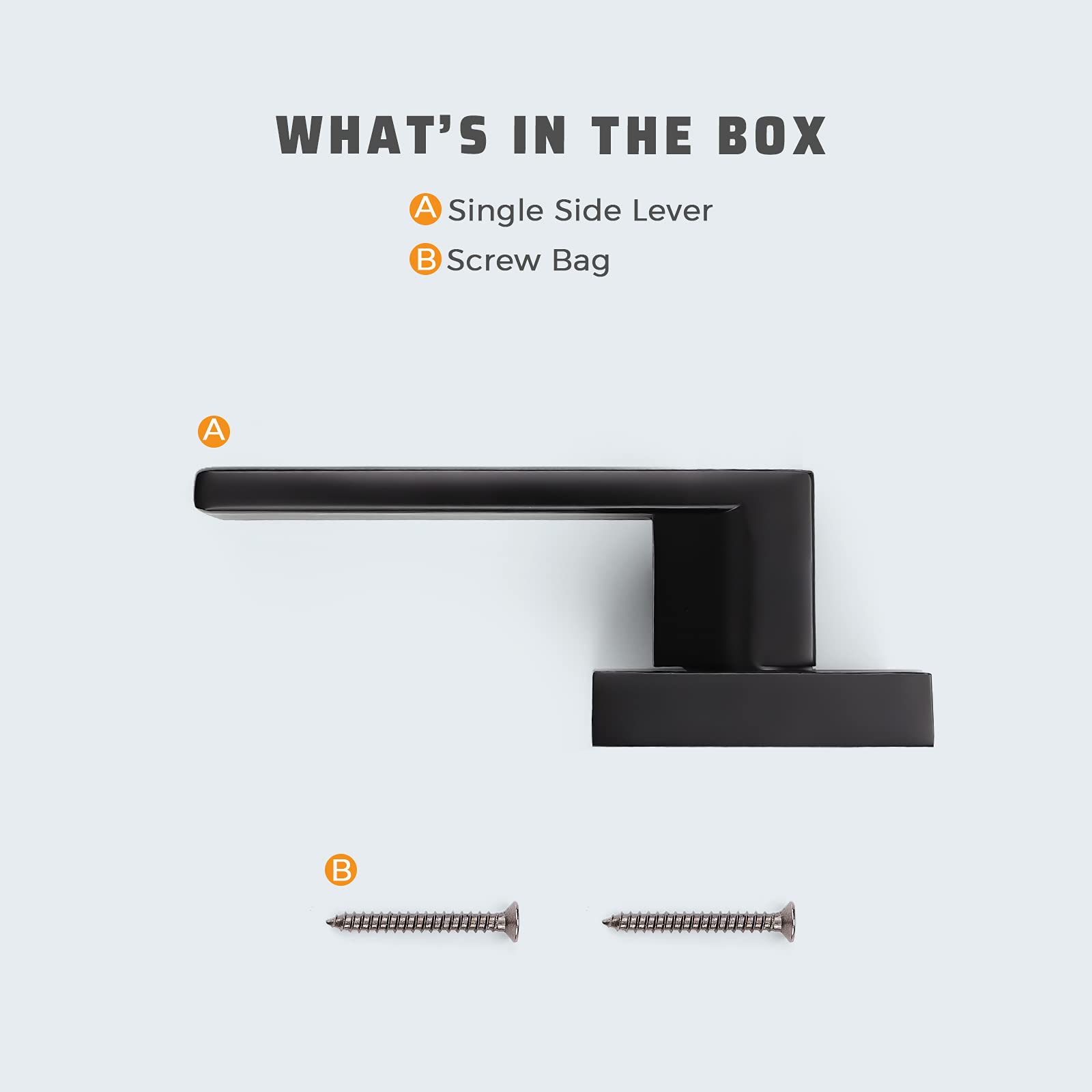 - DUMMY FUNCTION(Screws Outside): Just a single side handle with no latch or lock, decorative hardware pieces, designed for pantry doors or other doors that only require a pull to open. Can be combined with another type Screws Inside for TWO side use.