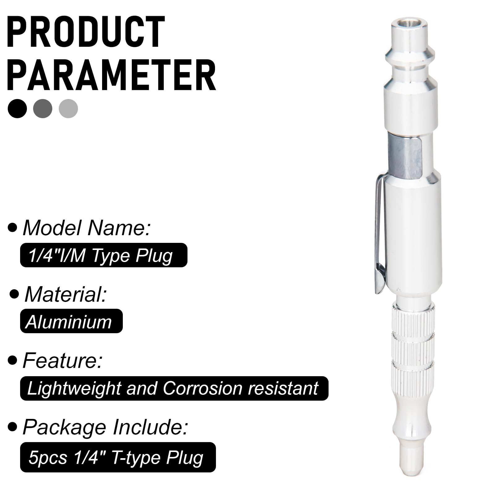 - 【Dimensions and Packaging】5pcs 1/4" T-plug adjustable pocket air guns