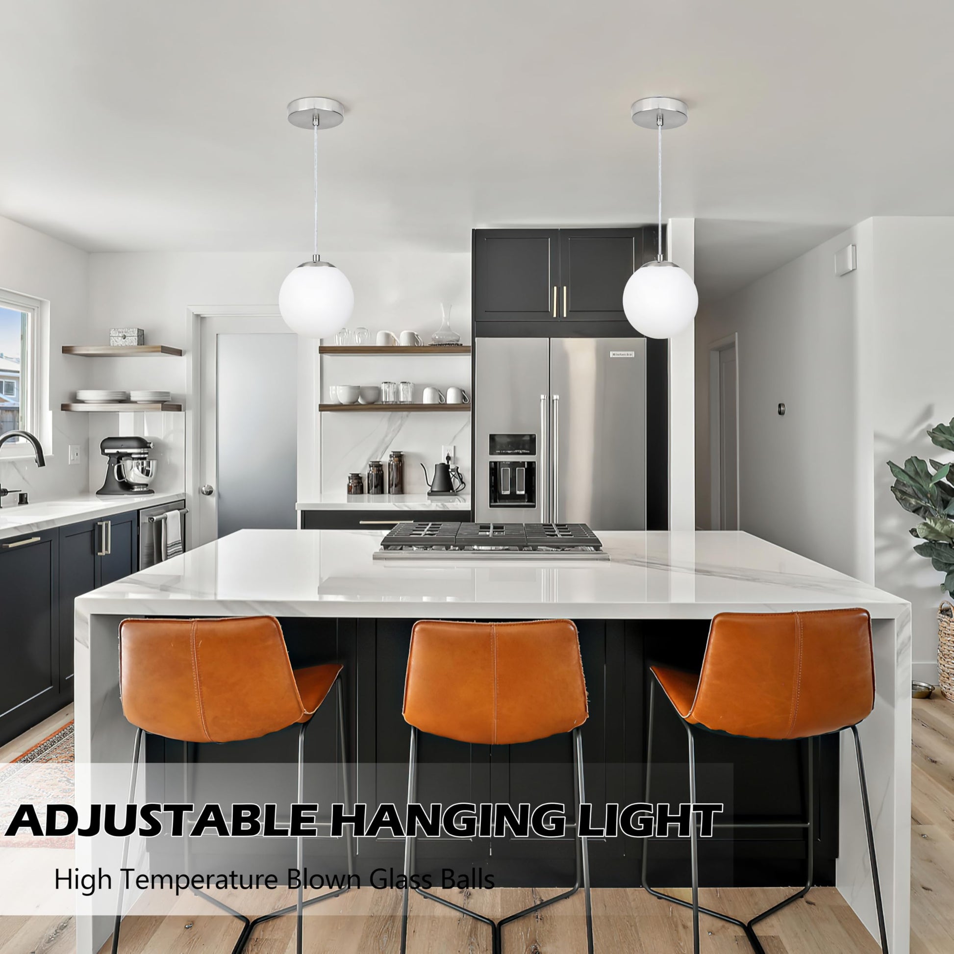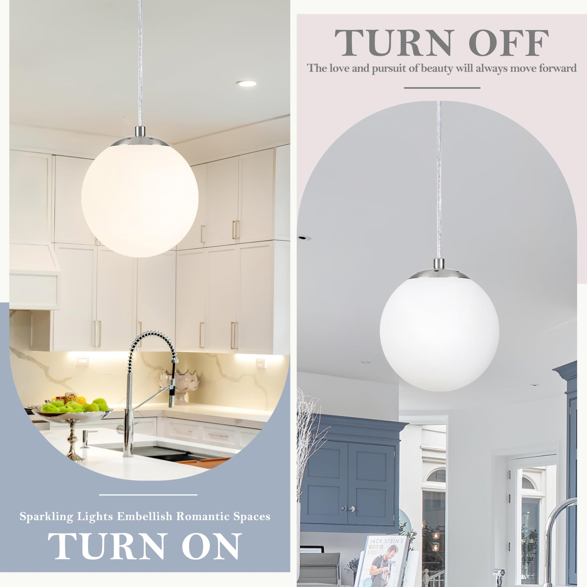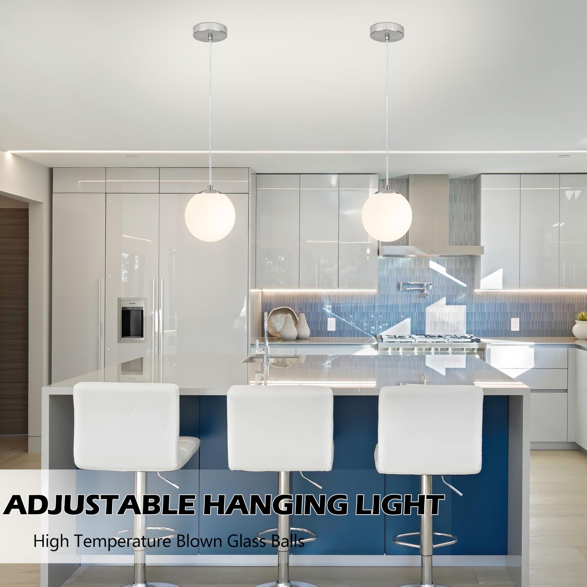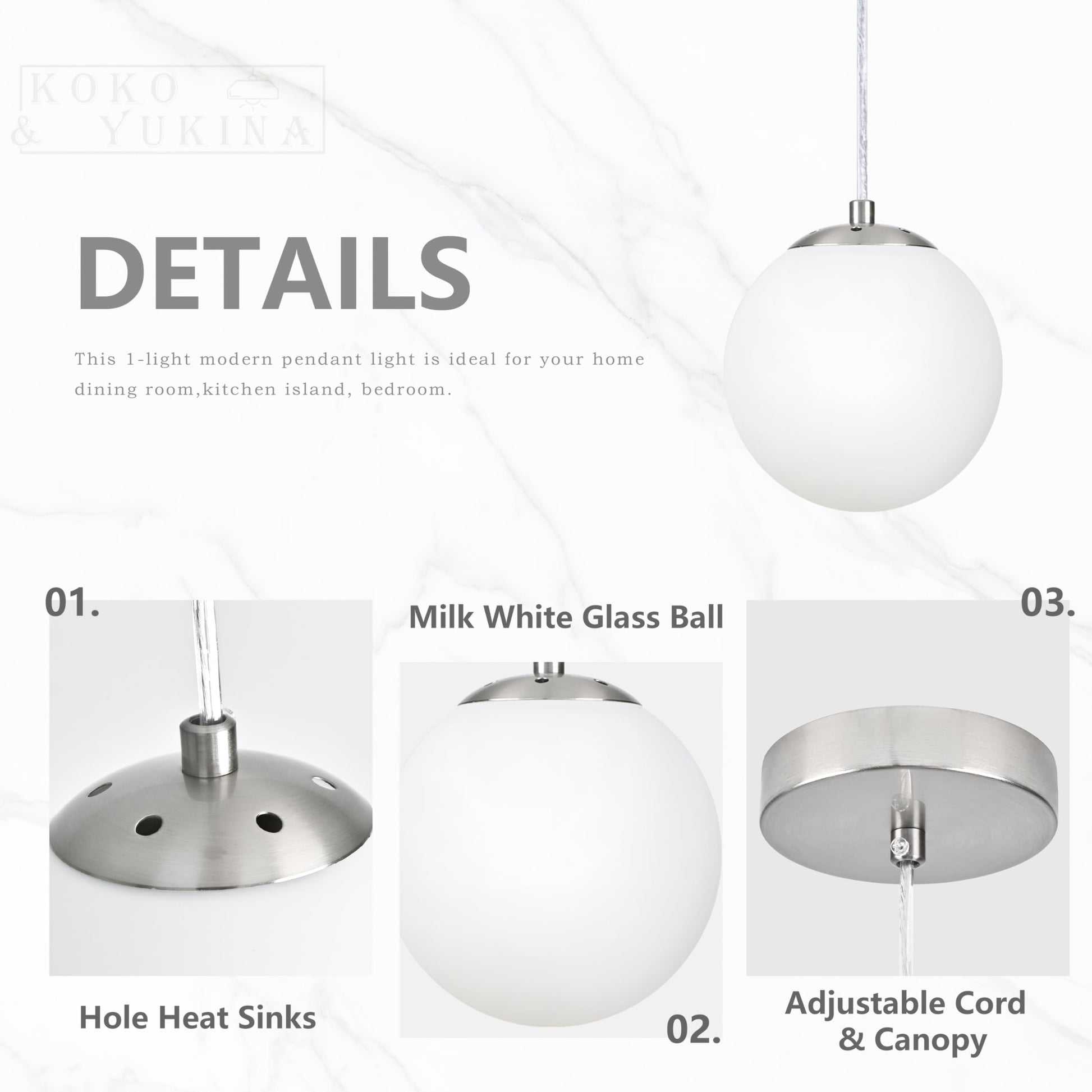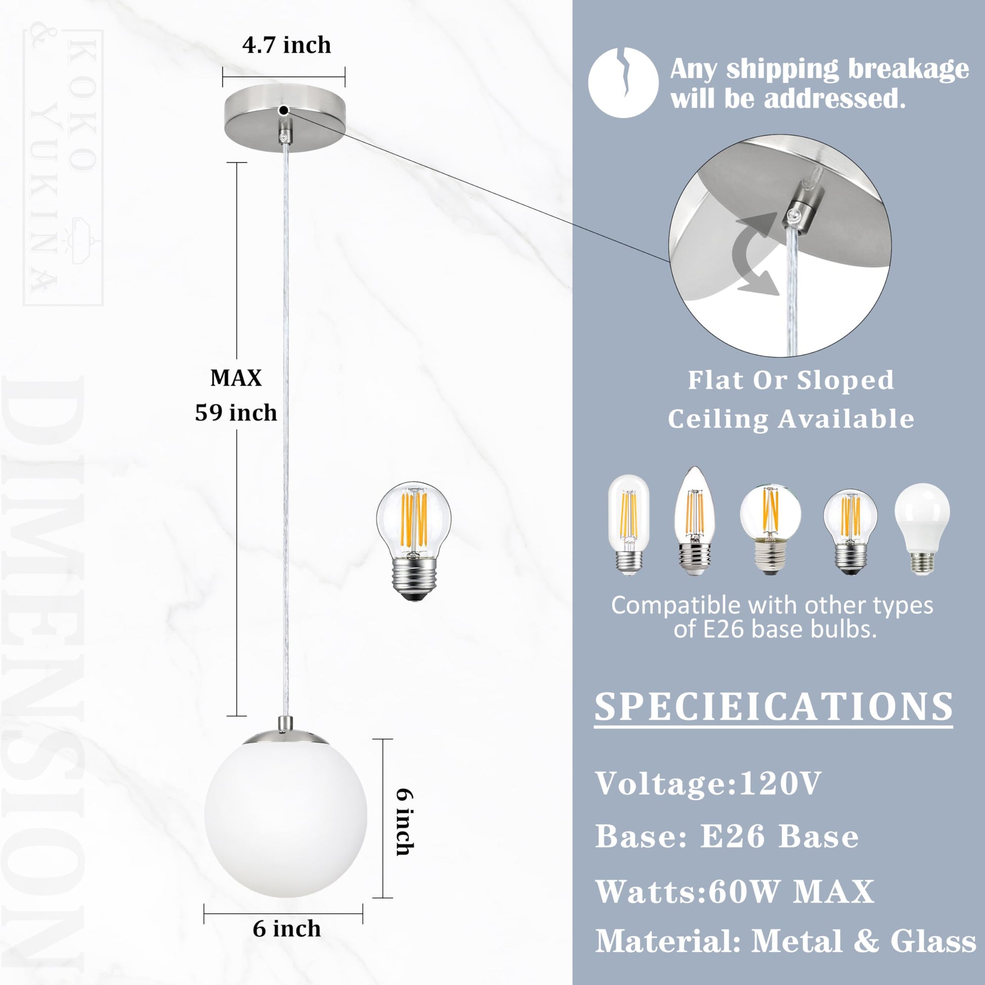 KoKo&Yukina 6 Inch Globe Pendant Light Nickel Globe Pendant Lights Kitchen Island Mid Century Light Fixture with Milky White Glass Shade for Dining Room (2 Pack)