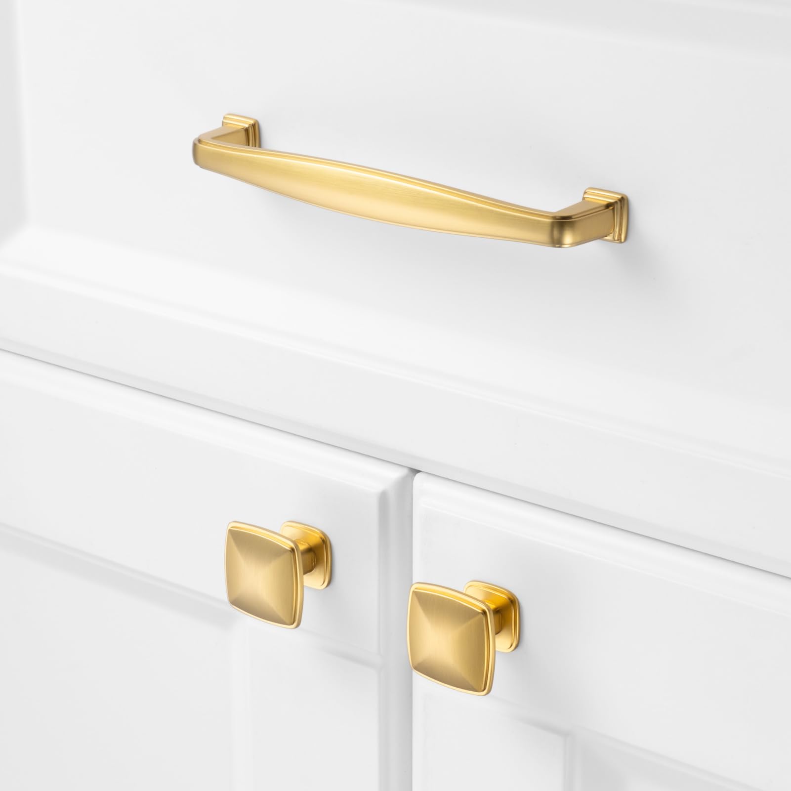 - Square foot cabinet gold handles for cabinets, drawer, dresser, kitchen cupboard, bedroom, bathroom vanity, furniture piece.