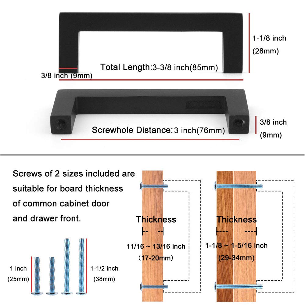 - 3 inch standard hole centers oil rubbed bronze cabinet handles are provided with free screws of 1 & 1-1/2 inch for easy installation.
