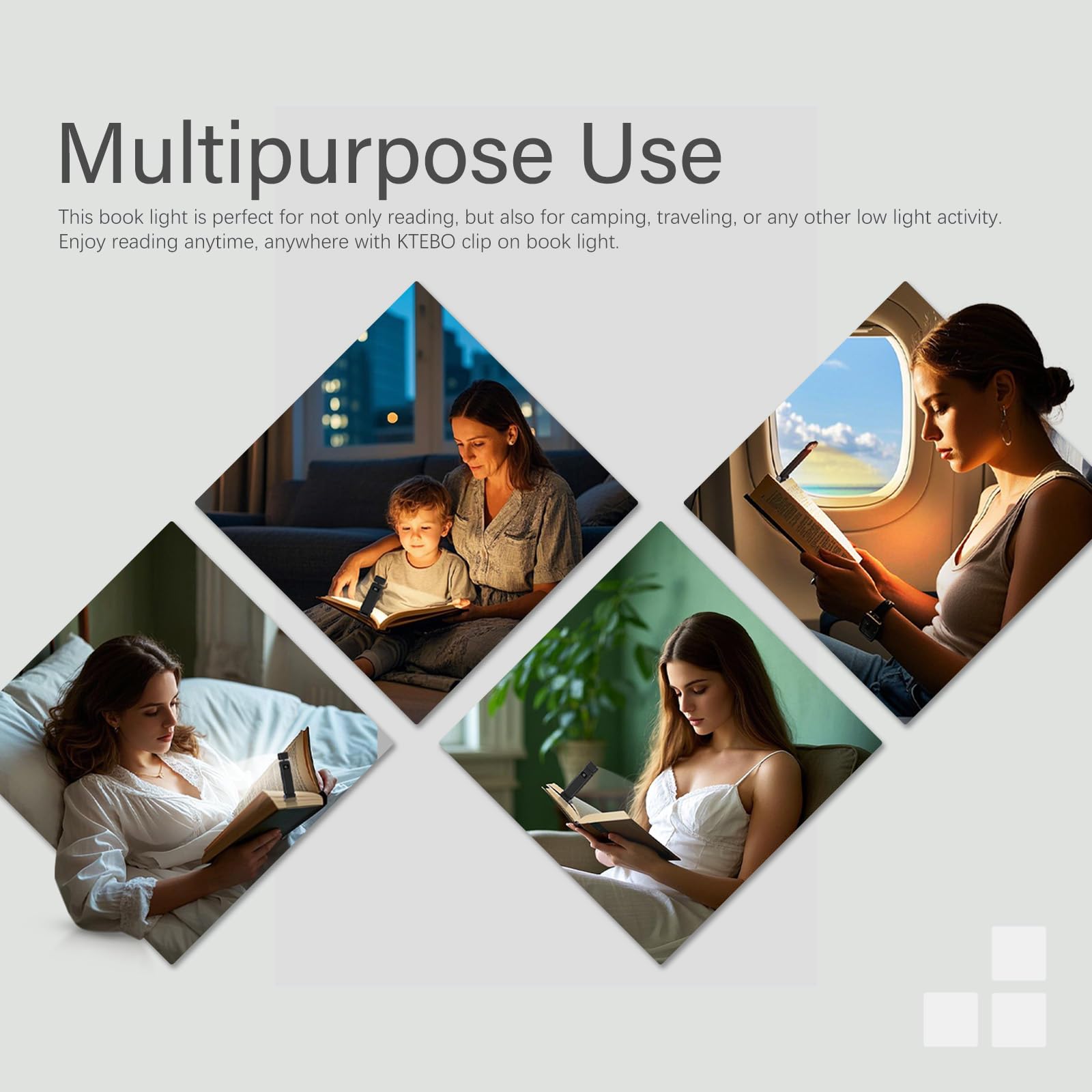 KTEBO Rechargeable Reading Book Light with Clip & Battery Indicator - 9 Luminescence Mode Book Lamp for Night Reading in Bed, Portable 1.6 Oz Ultralight, Stocking Stuffers for Kids, Book Lovers