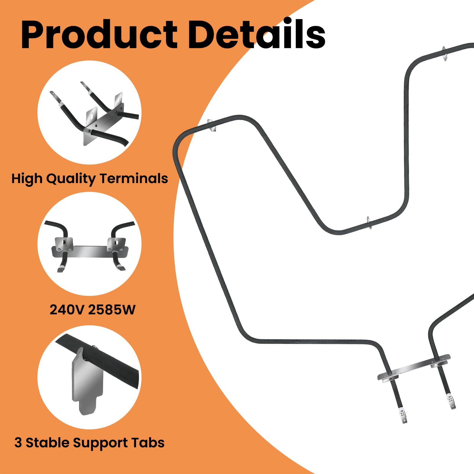 - Easy to install:You can easily replace old or faulty components with our components. All you need is a screwdriver and a pair of work gloves. Get your oven back up and running in no time. Perfect replacement for part number AP2030964,824269,WB44K10001,AH249238,EA249238,PS249238 Heating Element.