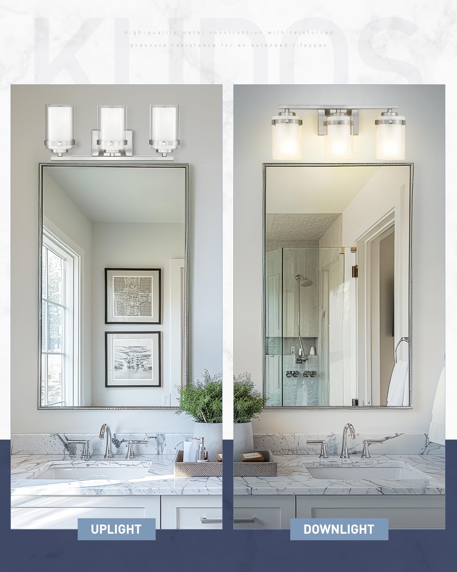 - Easy Installation & Wide Application: This vanity lights for bathroom can be installed facing up or down according to your preferences. You can install bathroom vanity lights over mirror according to the user manual and video instructions, making it a great addition to your bathroom, hallway, living room , dressing room, etc
