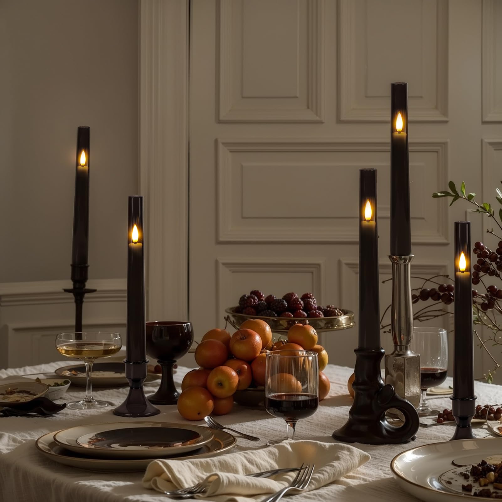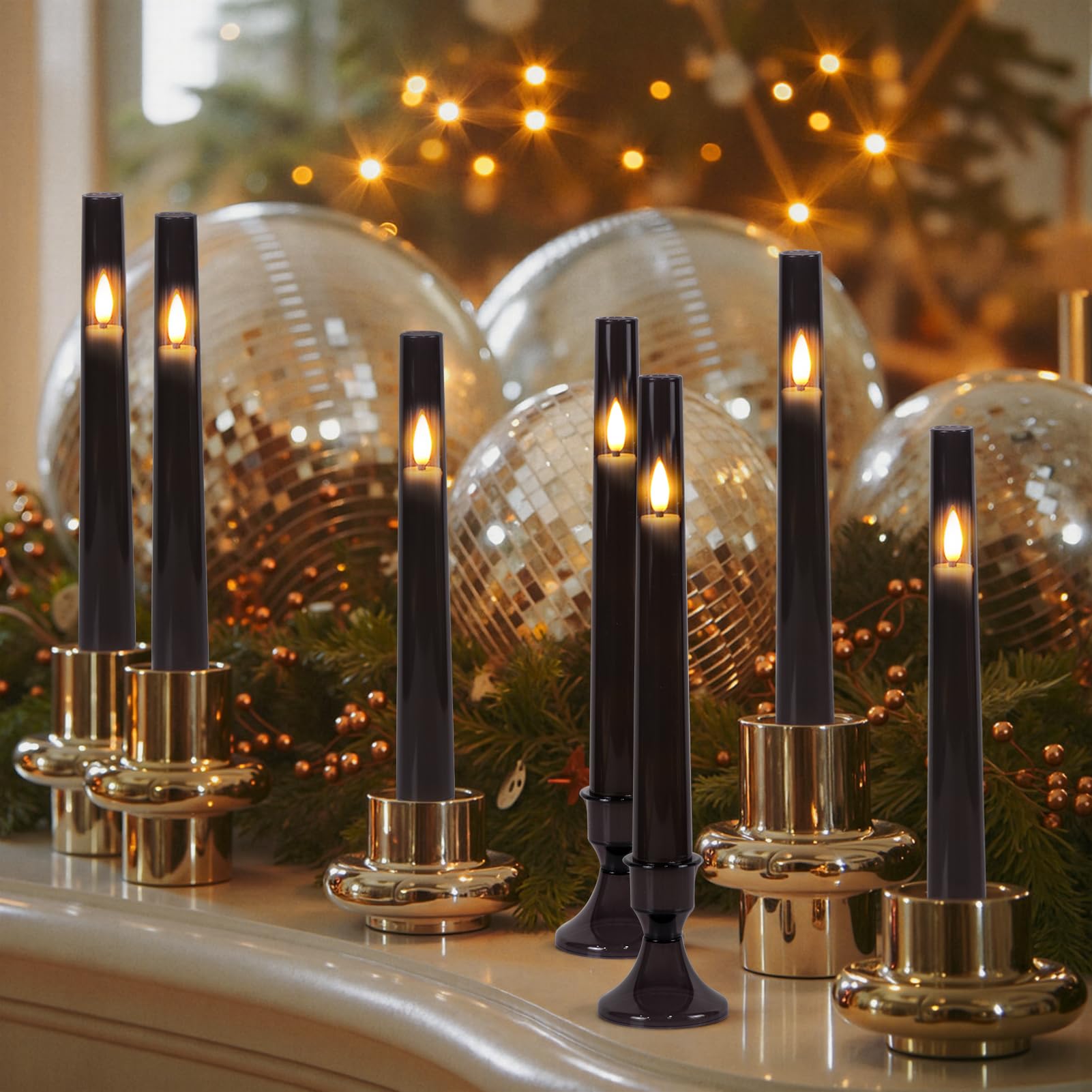 - HOLIDAY DECORATIONS GIFTS: The set of 6 flameless taper candles, which are designed for Spring, Summer, Wedding, Party, Halloween, Christmas, or Father's Day gift. Suitable for dining room, living room, bedroom, table, porch, kitchen, bathroom, bookshelf, and any corner that needs to be decorated. Let your home be full of romance and an alive atmosphere
