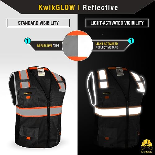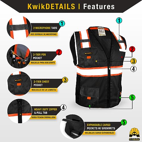 KwikSafety - Charlotte, NC - UNDERBOSS Safety Vest [11 POCKETS] Premium ANSI Class Unrated High Visibility Vest Construction Surveyor Reflective Vest Industrial Work Safety Vest for Men/Black 2XL