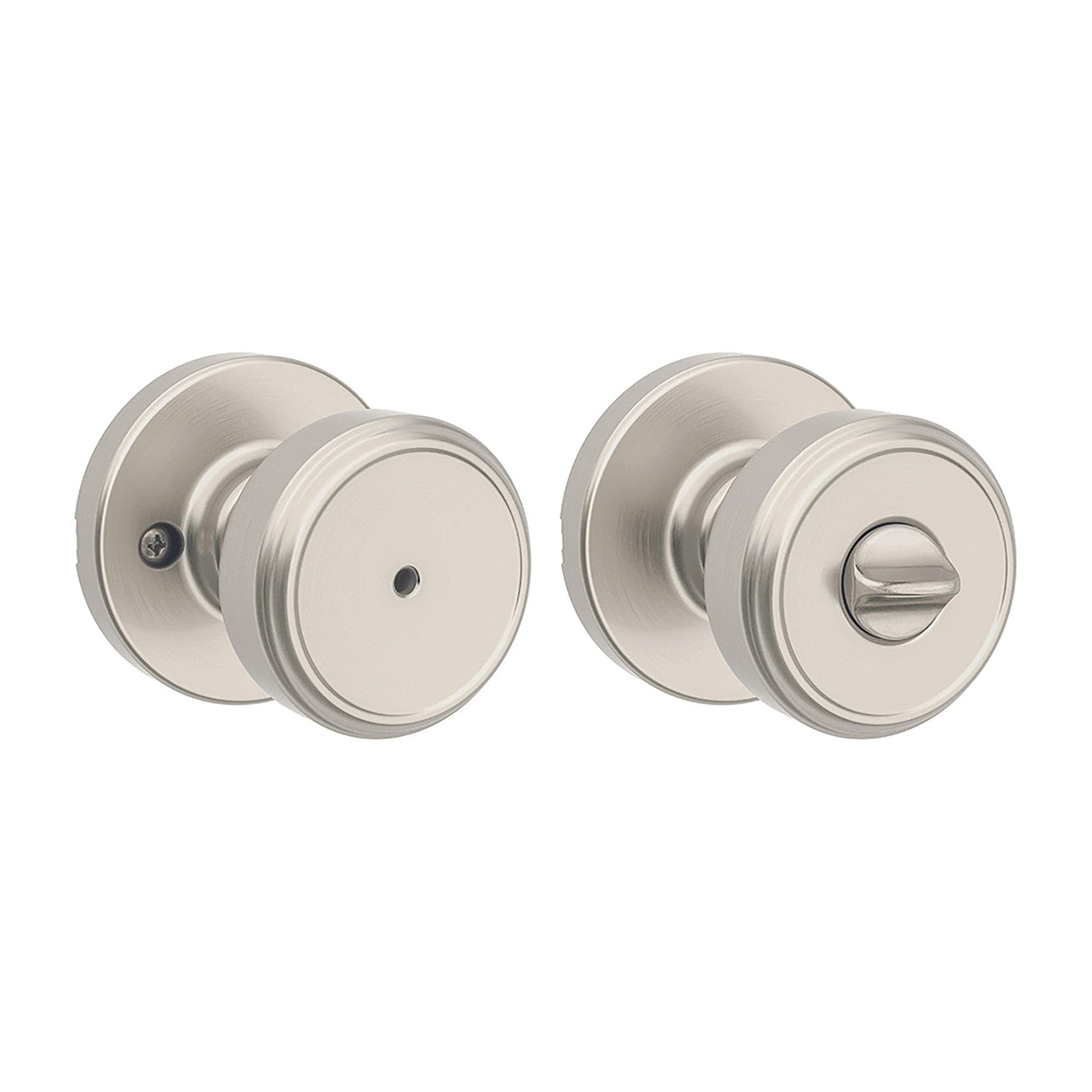 Kwikset Maven Interior Privacy Door Knob with Lock, Round Door Handle for Bathroom and Bedroom, Satin Nickel Keyless Turn Lock Doorknob, with Microban Protection
