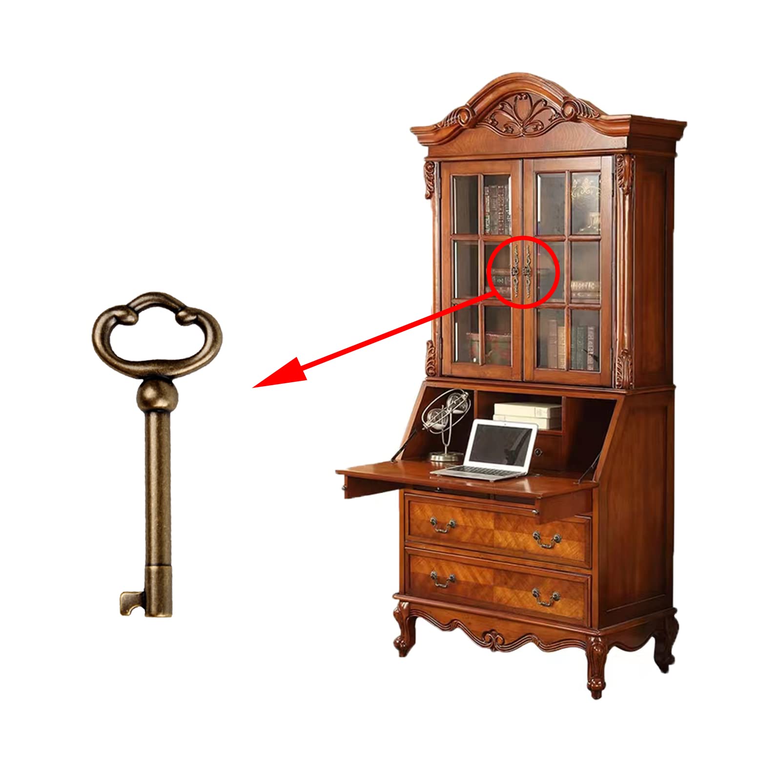 - [Note] Choosing the correct skeleton key for a cabinet or drawer is not an easy task. Please check the dimensions of the cylinder and lock before purchasing any antique key replacement.