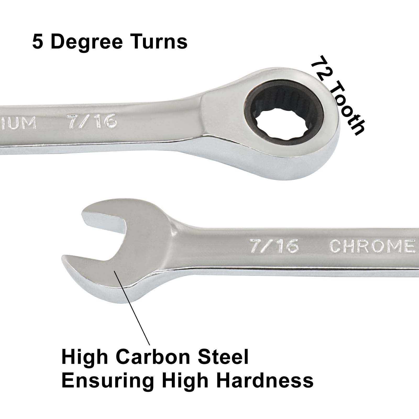 - Package Includes: 2 Pcs x 7/16 Inch Ratcheting Combination Wrench.