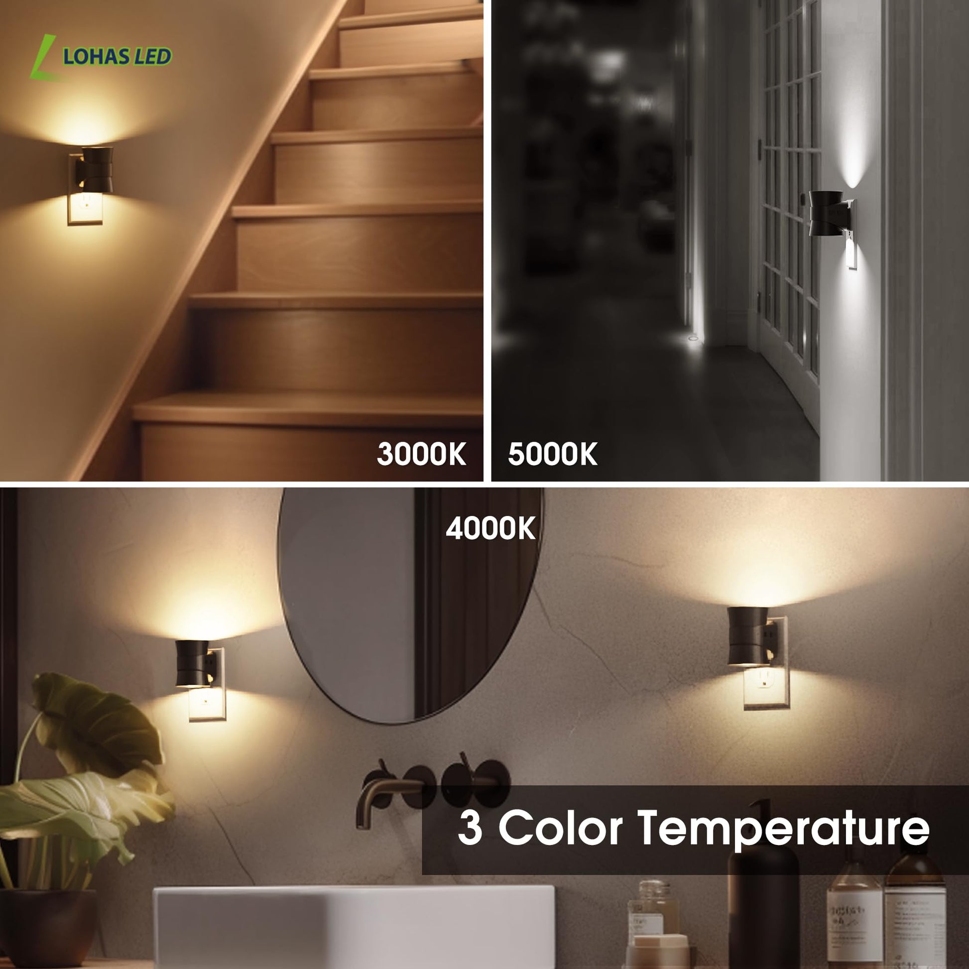L LOHAS LED Dimmable Night Light, 3CCT Adjustable Color & Brightness, Night Lights Plug into Wall, Versatile for Living Room, Kitchen, Bathroom, Hallway, and More