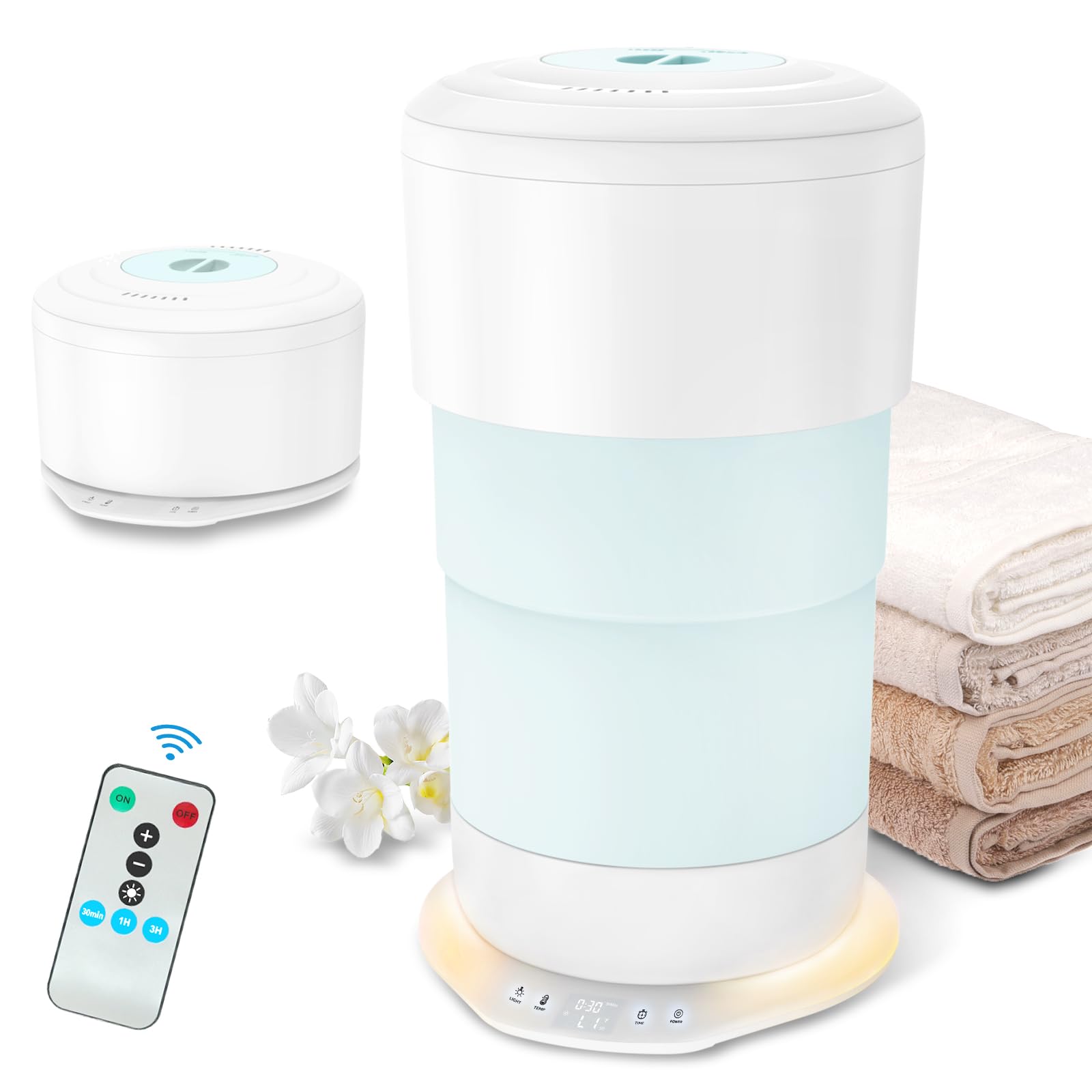 ladate 25L Foldable Towel Warmer Bucket, 212℉ Fast Heated Towel Warmers for Bathroom, Offers Custom Fragrance & Ambient Light for Home Spa, Auto Shut-Off, 3 Timers, Fits 2 Towels, Blanket, Bathrobe