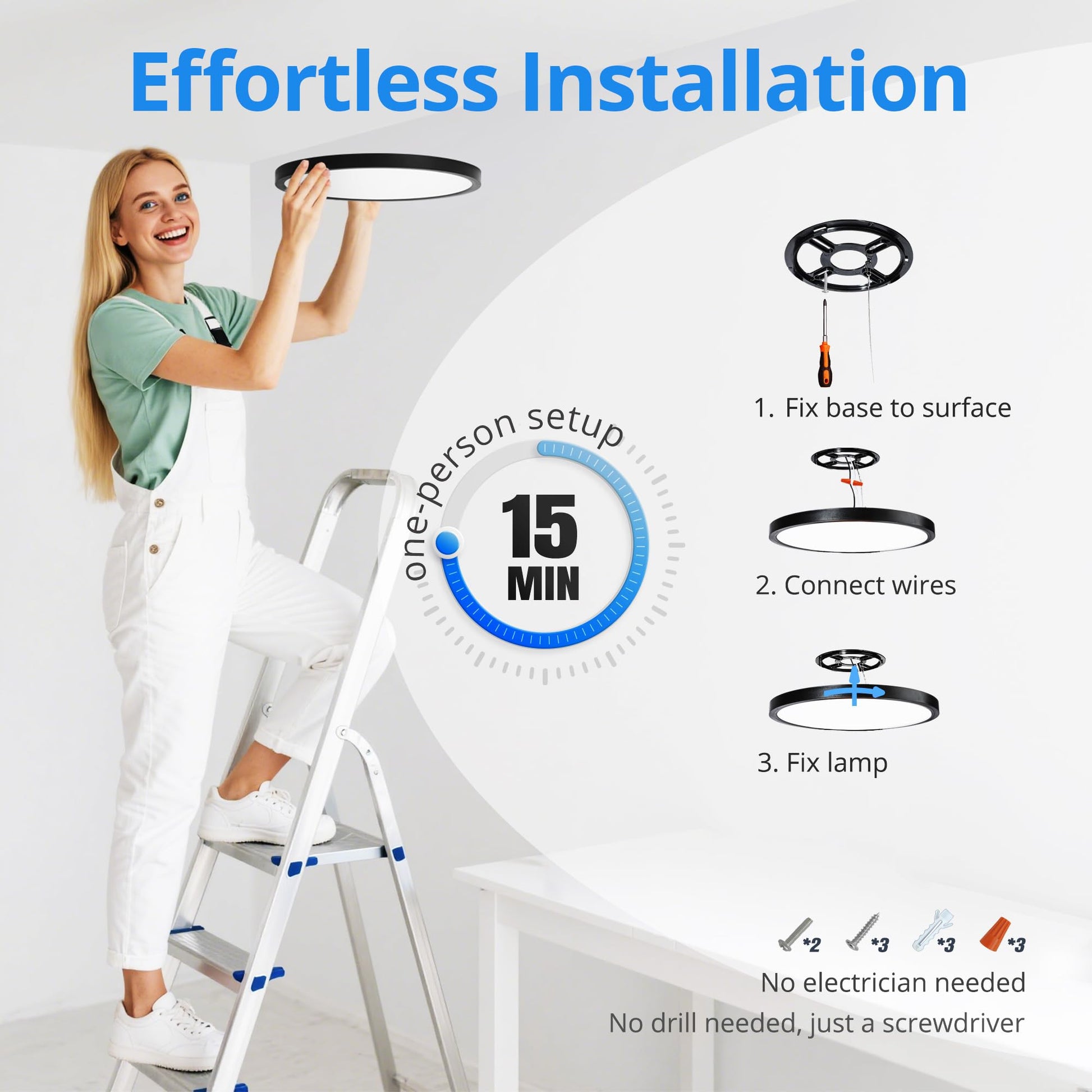 - 【85% Energy Save + 50,000-Hour Lifespan + Integrated LED Design】This 12inch dimmable led ceiling light unleashes 2640LM light—Save 85% on energy bills vs incandescent bulbs. As an integrated LED flush mount light, it eliminates frequent bulb replacements, cutting hidden long-term costs beyond energy savings. Backed by a 50,000-hour lifespan (lasts 22 years at 6hrs/day)!