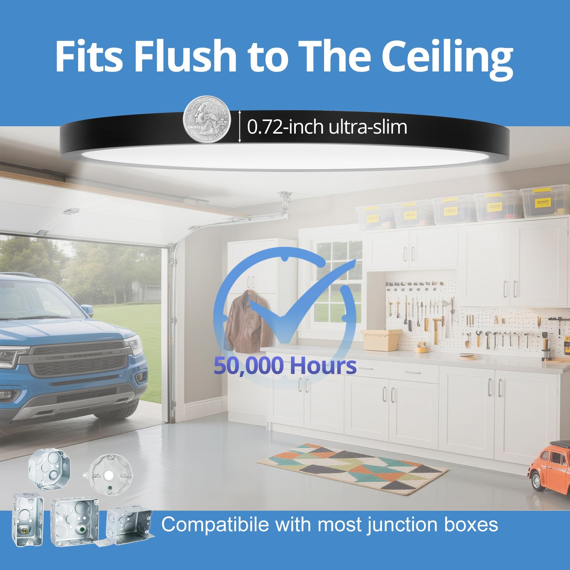 - 【0.72” Ultra-Thin + Lightweight – Fits All Ceilings & Tight Spaces】0.72” slim profile avoids cramped feelings in low-ceiling rooms (basements, attics) and works seamlessly on sloped ceilings—no extra adapters needed; lightweight design reduces load, compatible with sloped ceilings, drywall, popcorn, and concrete ceilings alike. Sleek style suits modern/traditional decor—no visual clutter, even in compact areas.