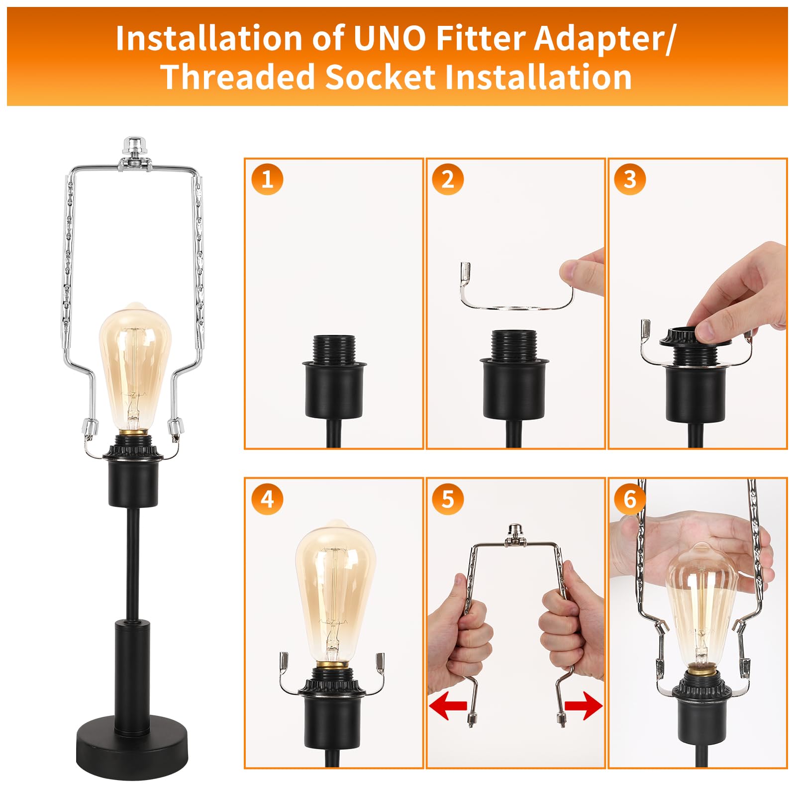 - 【APPLICATION】 Four bases for this lamp harp : the standard "saddle base" and the "UNO Slip-on" for E26 / E27 / E14 threaded socket, When your lamp holder is E14, you can easily convert E27 to E14 with E14 converter (white plastic sheet). Install for any style lamp.