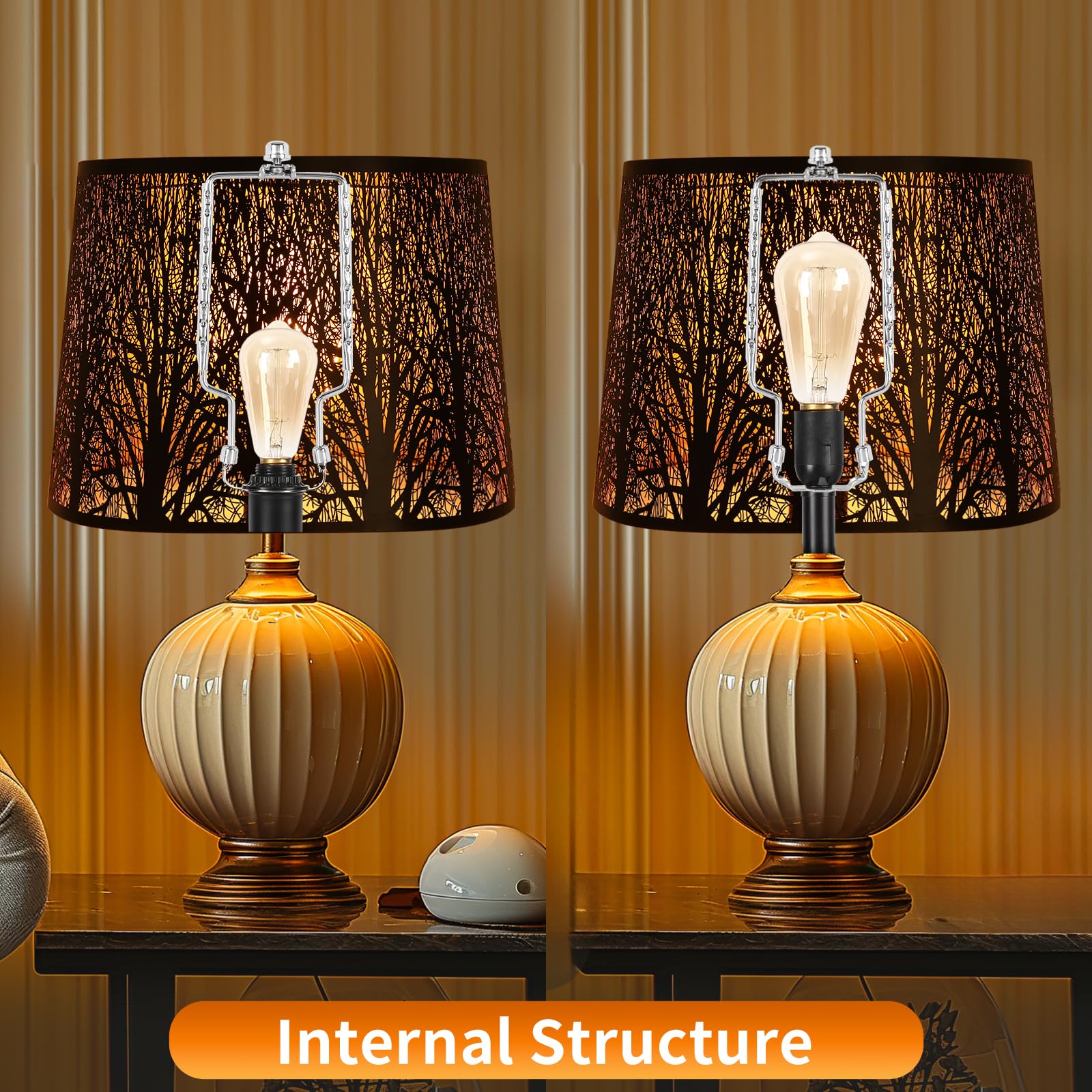 - 【PERFECT PRODUCTS AND SERVICES】 No need to measure the length of lamp shade, Adjust the harp to the right size to get just the right look. If you want to replace your shade again, just another adjustment. lamp shade holder