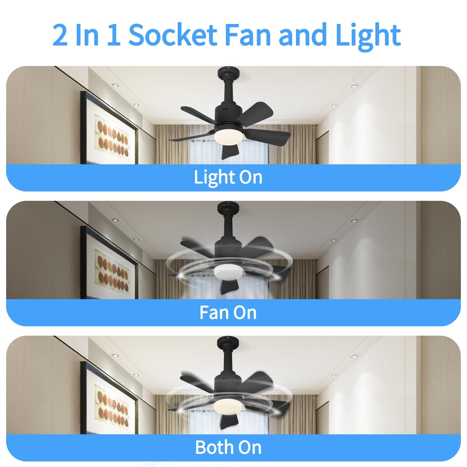 - 【2-in-1 Socket Fan Light】LANMEL socket fan light combines a ceiling fan + ultra-bright LED bulb in one! Perfect for bedrooms, kitchens, garages & more—no need for separate fixtures. Enjoy cooling + lighting instantly!
