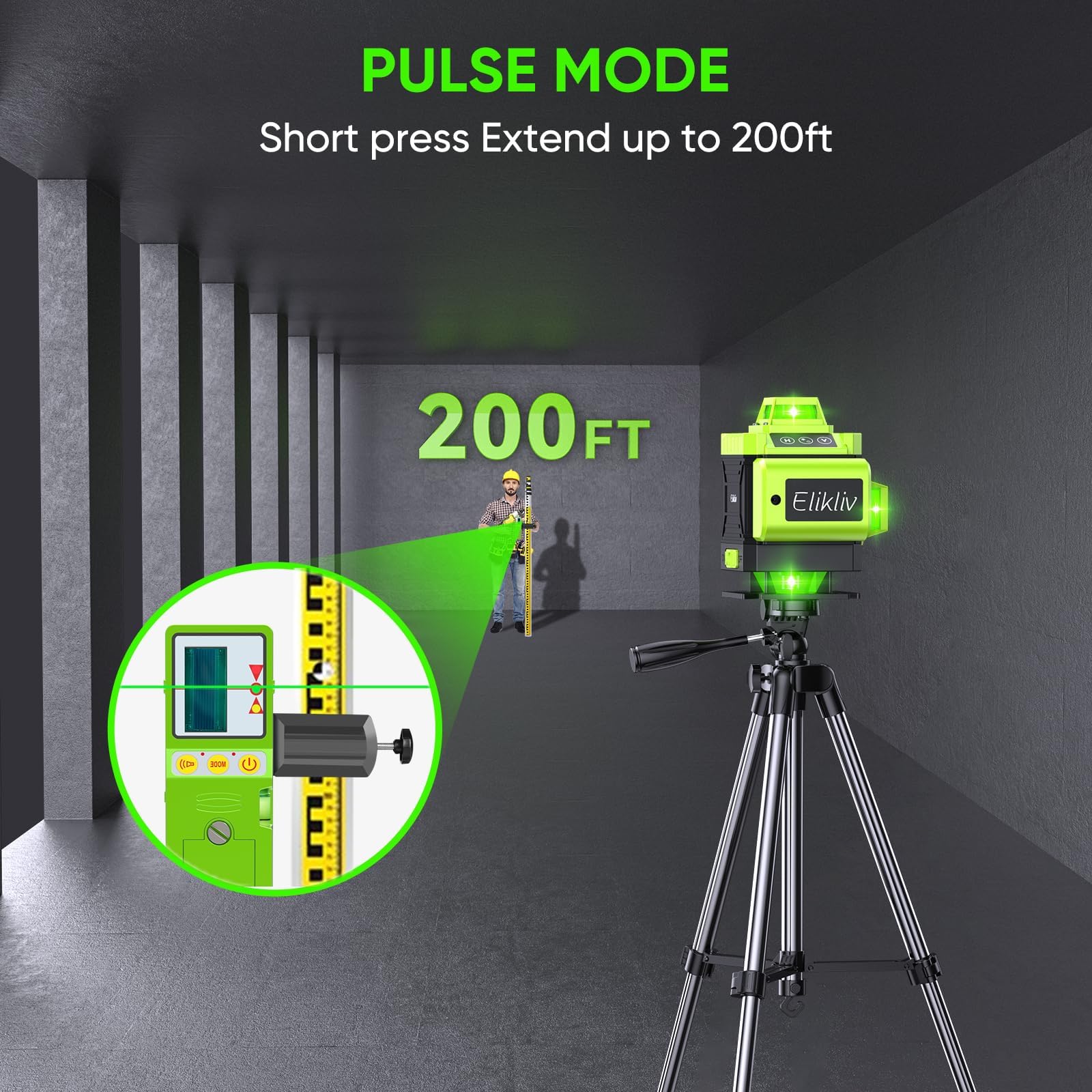 Laser Level Self Leveling - Elikliv 200ft Robust Indoors 4D Green Cross Line Laser Level 4x360 Horizontal Vertical Dual-beam Lasers for DIY or Professional Job Site Integrated Bracket Included