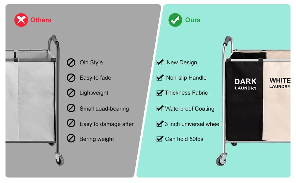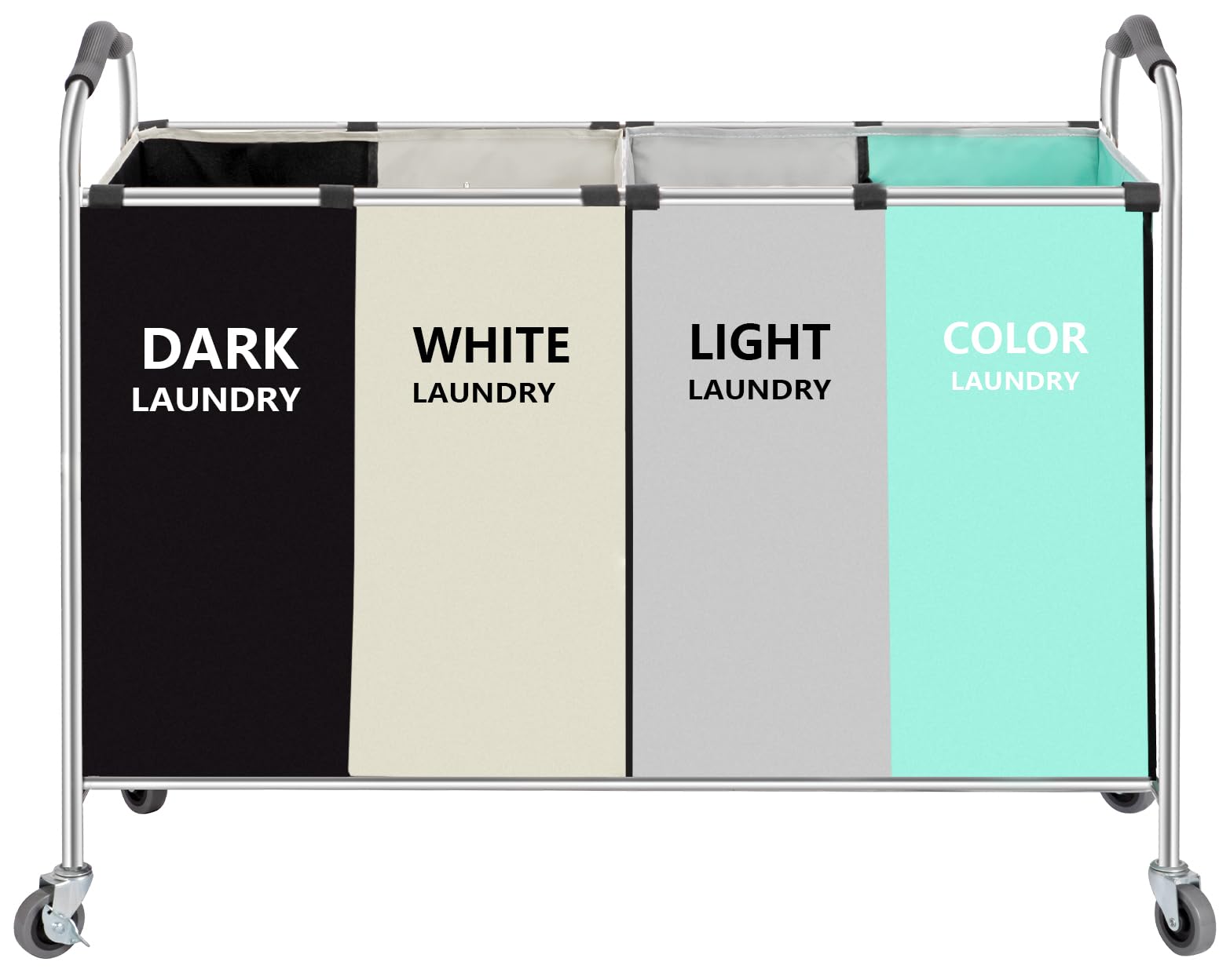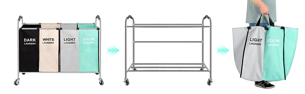 - 4 Sections Large Capacity Removable & Waterproof Laundry Sorter: Waterproof lining which prevents clothes from unpleasant smell.This laundry basket sorter Divided into 4 sections so you can sort your dark, color from light as you drop clothing into the hamper bags.