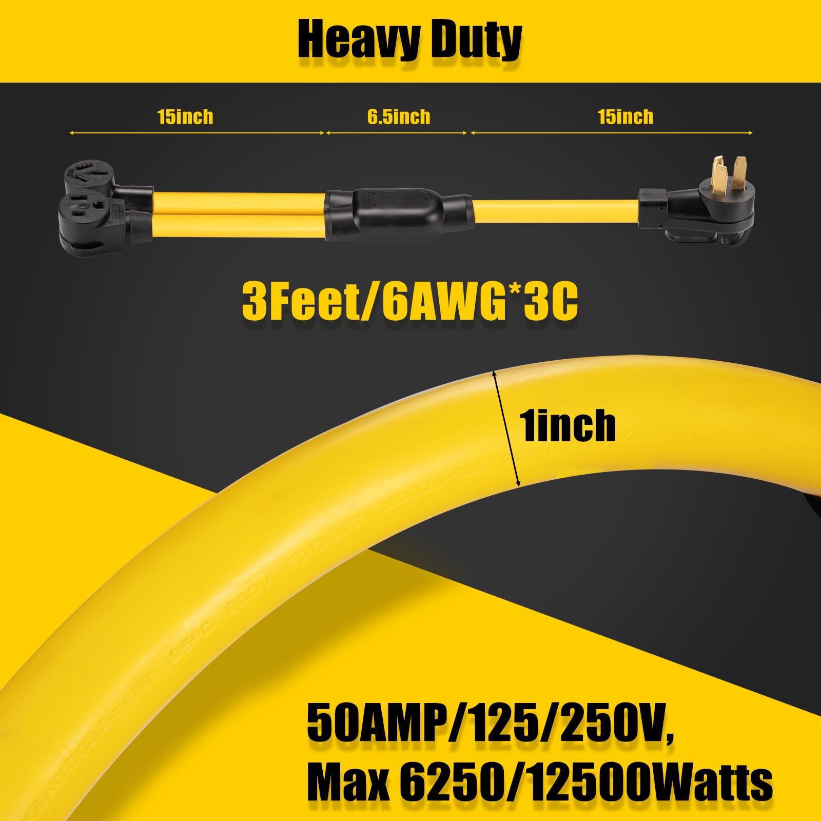 - 【Heavy Duty】Molded plug, copper wiring coated, prevents the cable from overheating due to prolonged use. Heavy-duty flame retardant, UV-resistant, real heavey duty 6 gauge STW, indoor/outdoor water resistant jacket, UL&ETL Listed