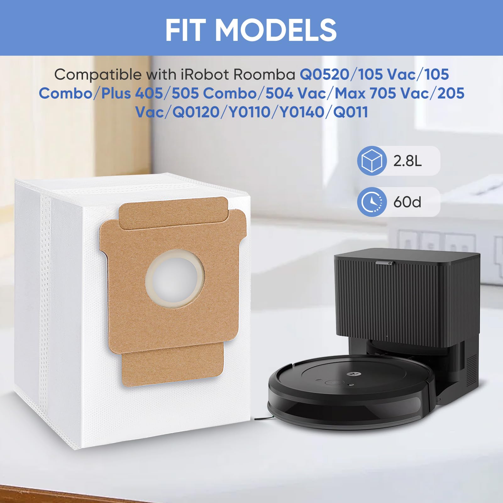 - 【Compatible Models】These replacement dust bags are compatible with iRobot Roomba Vac 2 (Q0520), Roomba 105 Vac/105 Combo, Plus 405/505 Combo, and Max 705 Vac models. Please confirm model compatibility before ordering